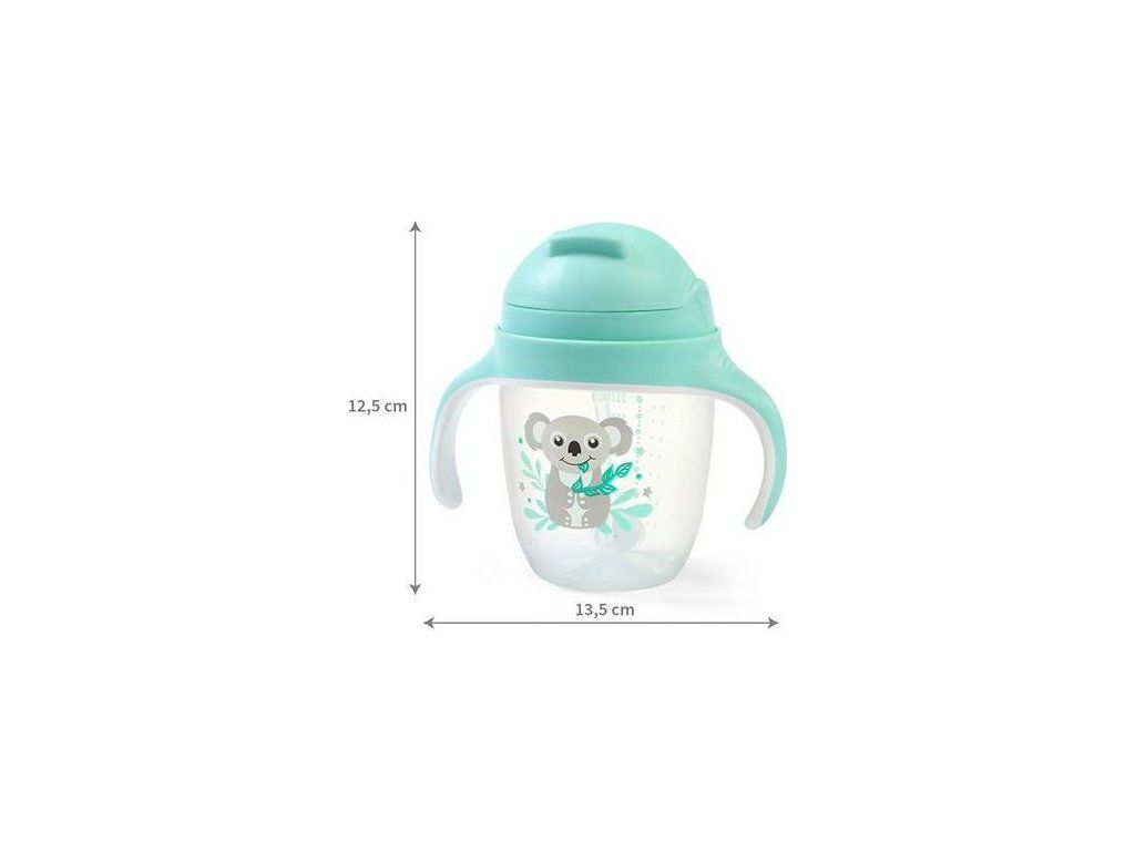 Hrnek je ideální pro naučení se samostatně pít. Brčko se pohybuje s tekutinou uvnitř láhve, takže vaše ratolest může pít z libovolného úhlu, a to i v pololehu nebo nakloněním hrnečku dnem vzhůru.