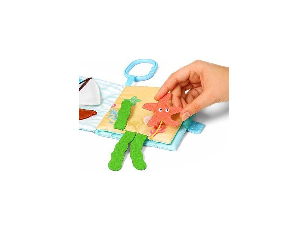 Smyslová kniha Mořský svět odhalí vašemu dítěti fascinující podmořský svět. Stimuluje smyslový vývoj miminka od prvních dnů života. Různé materiály a textury stimulují hmat. Tkaniny, jako je plsť, jsou měkké a bezpečné. Zůstávají odolné i po intenzivní hře. Odnímatelný suchý zip a skryté prvky probouzejí zvědavost vašeho dítěte a povzbuzují je k samostatnému objevování. Rozvíjejí koncentraci a logické myšlení.