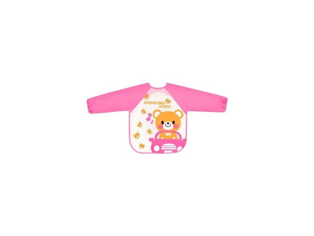 BocioLand Zástěrka, bryndák nepromakavý s dlouhým rukávem, Méďa, růžová