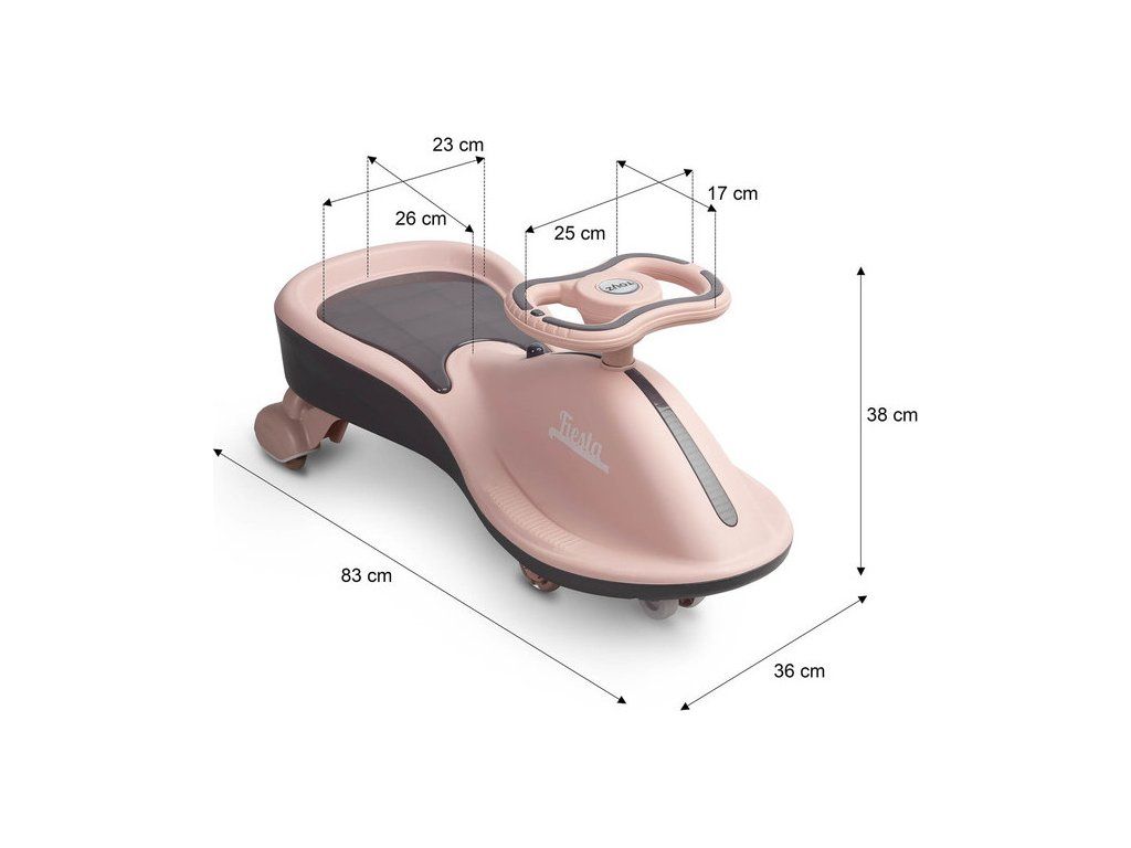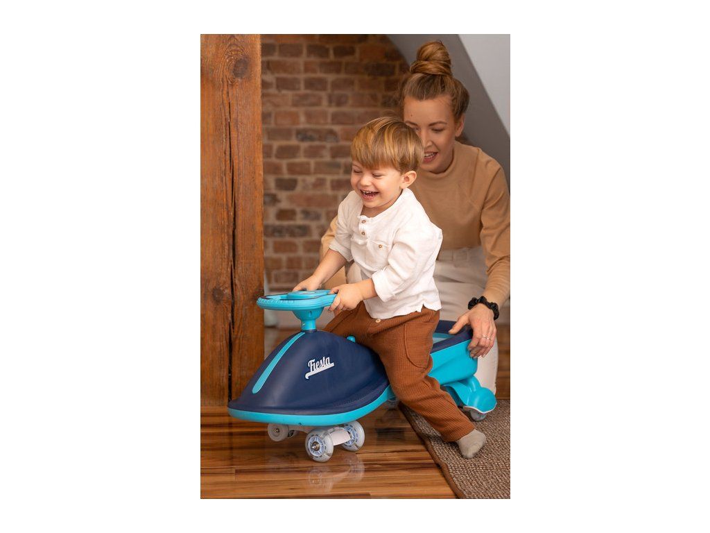 Fiesta je gravitační odrážedlo bohatě vybaveno barevnými světly, které poskytují další atrakce pro dítě. Chcete-li ji přesunout, musíte střídavě pohybovat volantem. Stisknutím příslušných tlačítek dítě aktivuje řádění světel a veselých melodií a při dosažení vhodné rychlosti se rozsvítí i kolečka. Fiesta může být použita pro vnitřní i venkovní hry. Mohou používat děti od 3 let. Maximální zatížení je 100 kg, takže je Fiesta jako stvořená pro rodinné závodění.