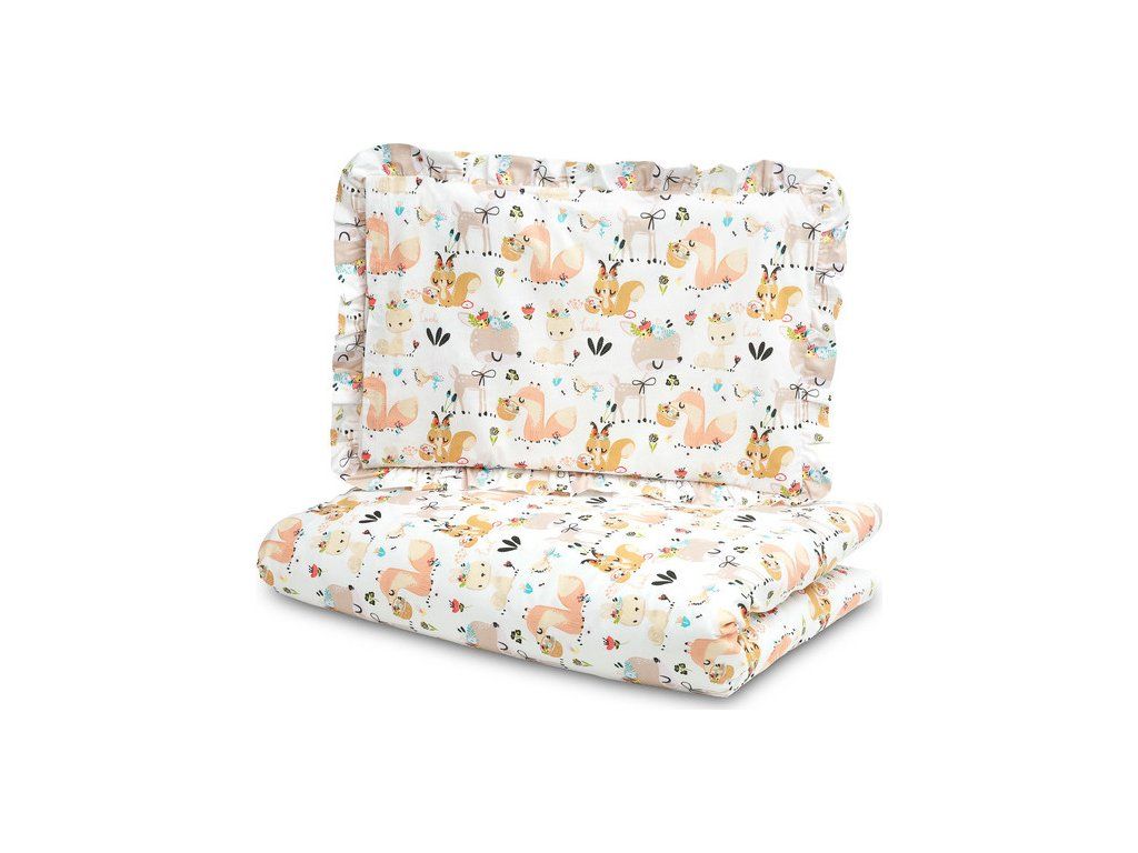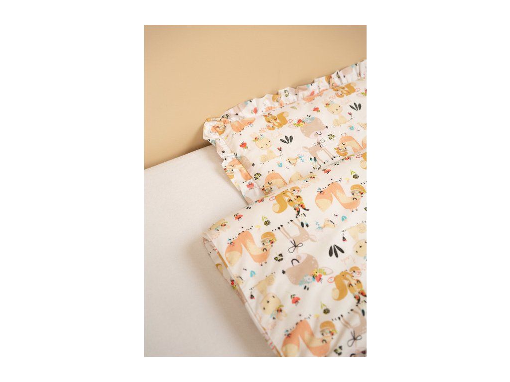 Dvojdielna detská posteľná bielizeň s volánom je vyrobená z mäkkej na dotyk a odolnej 100 % bavlny. Farebné kombinácie pripravené v kolekcii sa dokonale hodia do každej detskej izby. Súprava obsahuje obliečku na prikrývku 100x135 cm a obliečku na vankúš 40x60 cm. Obliečka na prikrývku sa zapína na zips, obliečka na vankúš je skladacia.