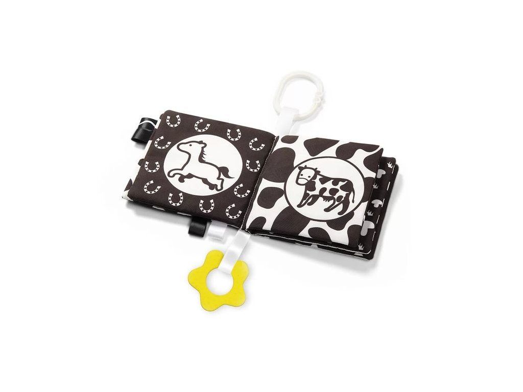 - kniha má kontrastné farby, ktoré podporujú zrakový vývoj dieťaťa