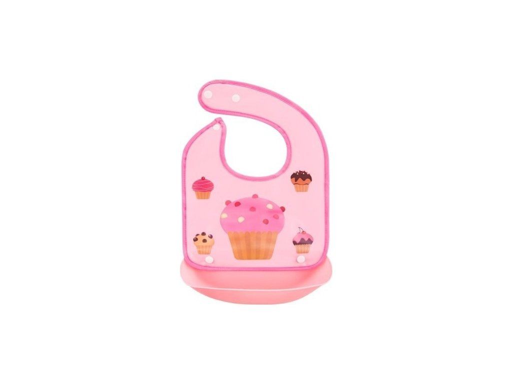 BocioLand Silikónový podbradník s vreckom Muffin, ružový