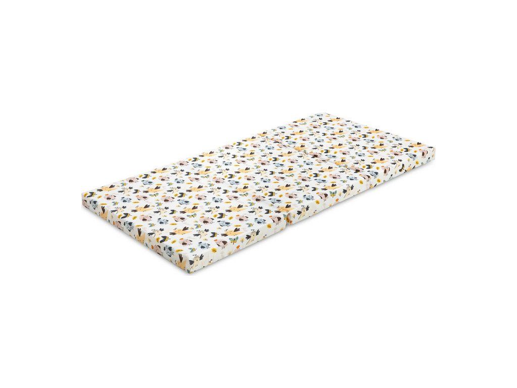 Cestovný matrac s bavlneným poťahom od Sensillo je skvelým riešením na cestovanie. Pri balení batožiny musíme často voliť medzi pohodlím nášho dieťaťa a obmedzenou kapacitou kufra. Vďaka trojitému skladaniu dosahuje matrac kompaktných rozmerov (60x40x15cm) a transportná taška, ktorá je súčasťou setu, uľahčuje prenášanie. V rozloženom stave má rozmery štandardný detský matrac (120x60x5cm). Bavlnený poťah je možné ľahko zložiť a vyprať.