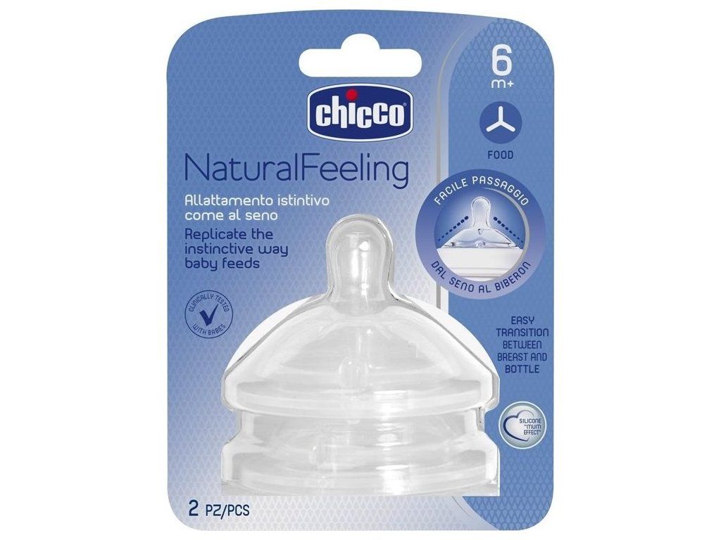Chicco Dudlík na láhev Natural Feeling silikon na kaši 6m+ 2 ks