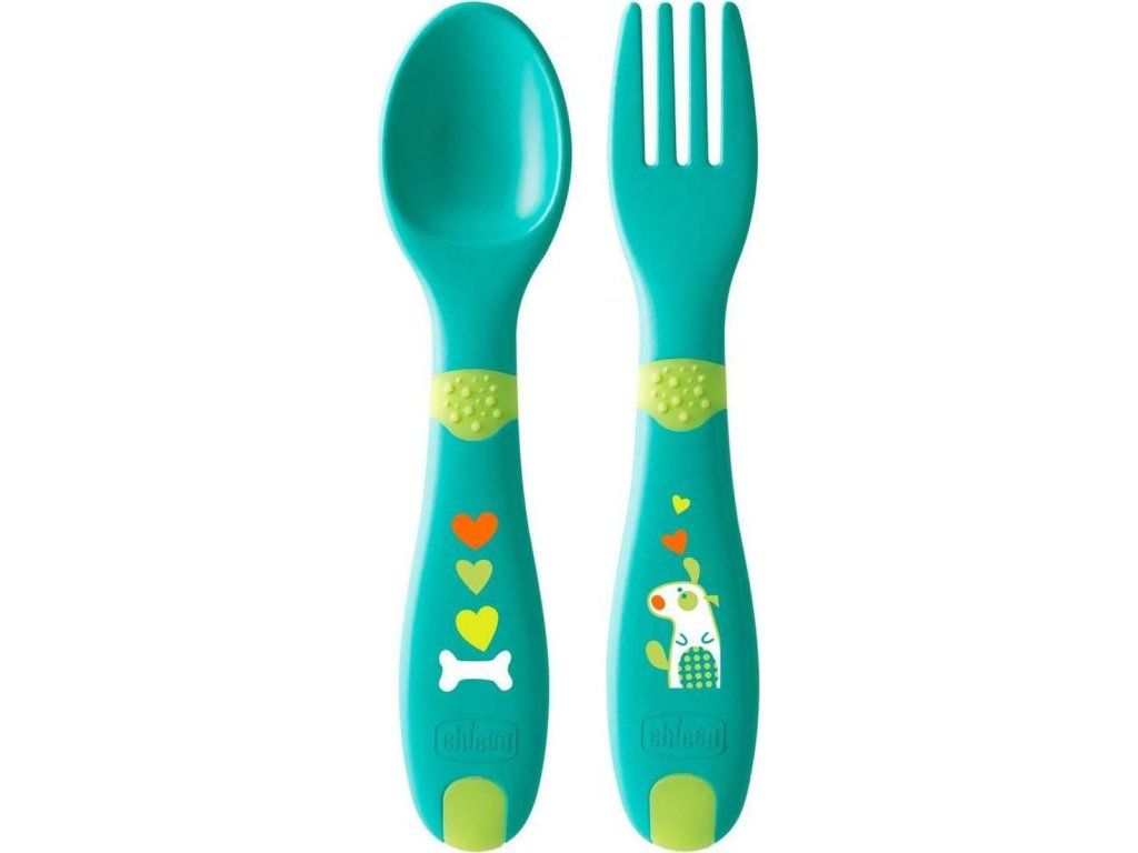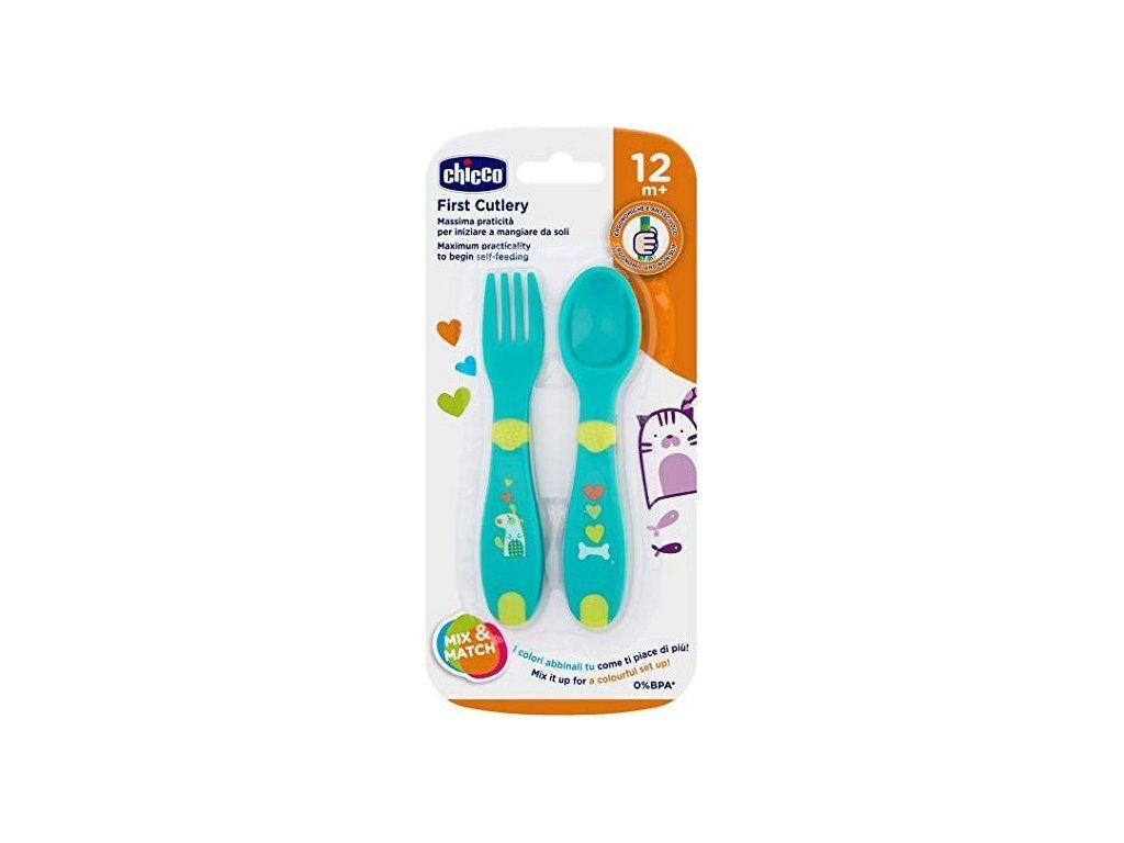 Chicco Lžička - vidlička plast, 12m+ Modrá