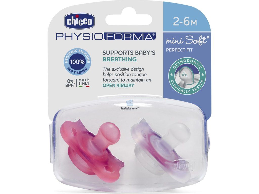 Chicco Šidítko celosilikonové Mini Soft 2 ks, 2-6m dívka