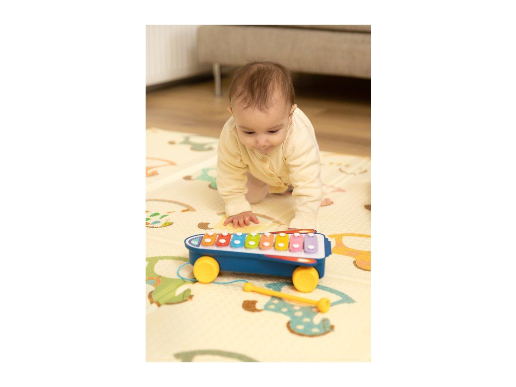 Cimbálky TOYZ sú farebnou vzdelávacou hračkou, ktorá vaše dieťa uvedie do sveta hudby. Cimbal má na spodnej strane kolieska, takže hračku je možné použiť aj ako závodné autíčko. Taktovka pripojená k cimbalu je pripevnená na povrázku, takže sa nestratí. Hračka je vhodná pre deti od 18 mesiacov. Činely sú k dispozícii v 2 farebných variantoch zasielaných náhodne.