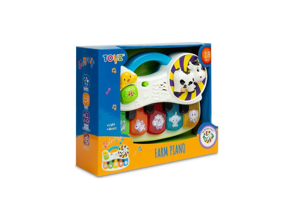 Edukačná hračka farma TOYZ, ktorá rozvíja lásku dieťaťa k hudbe. Farebná klávesnica je pri hre osvetlená, takže pozornosť dieťaťa zostane sústredená na hračku.