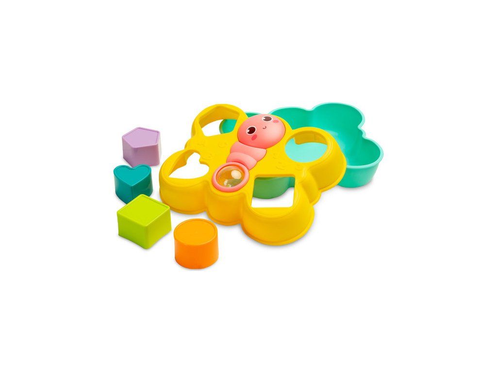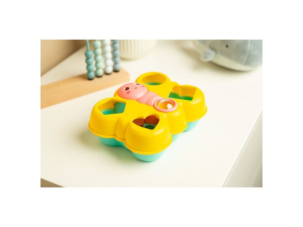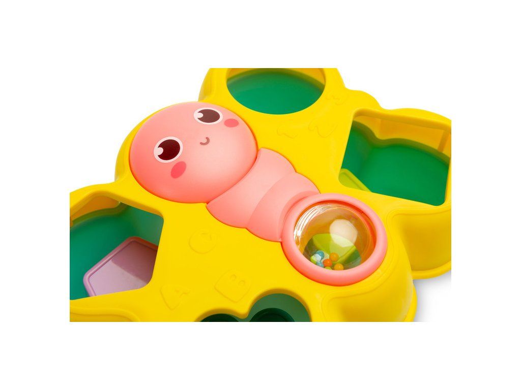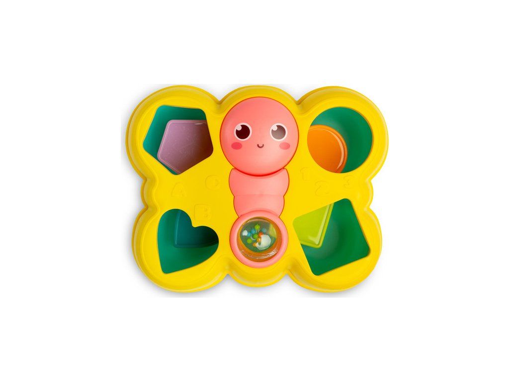 Vkladanka motýlik je skvelá logická hračka pre najmenších. Obsahuje 4 farebné bloky, ktoré sa vkladajú do otvorov vo veku. Motýľová usmievavá tvár sa dá otáčať a chvost obsahuje priehľadnú guľu naplnenú farebnými hrkajúcimi guličkami. Hračka je vhodná pre deti od 18 mesiacov.