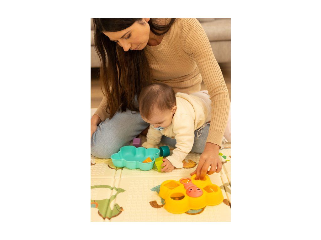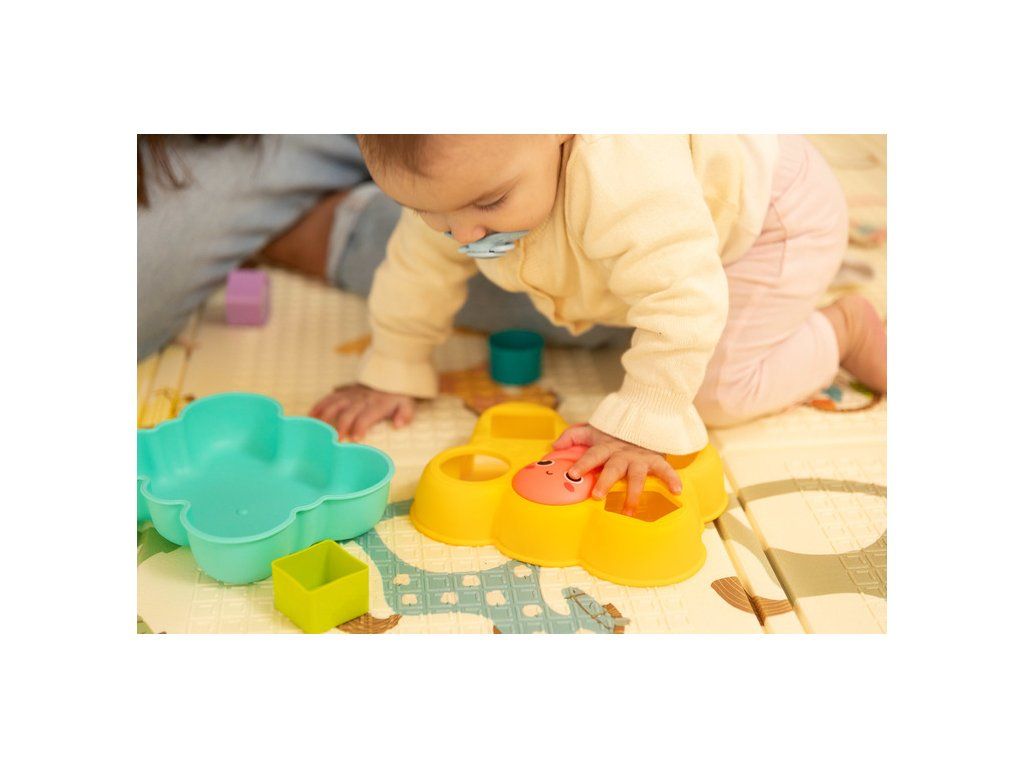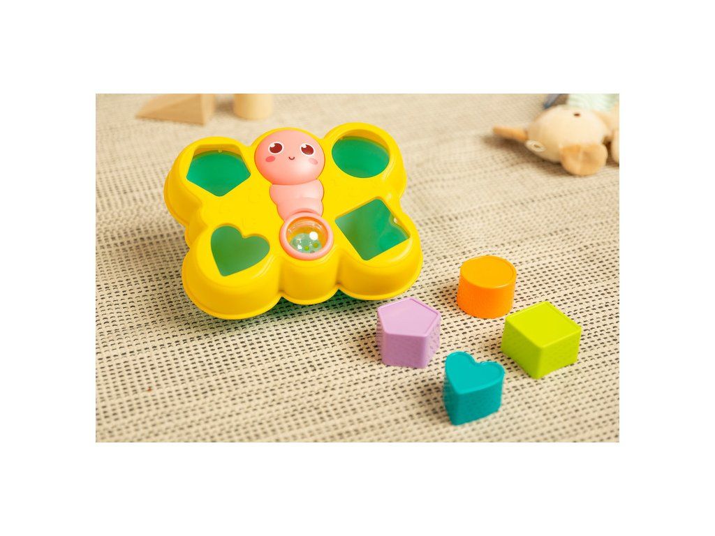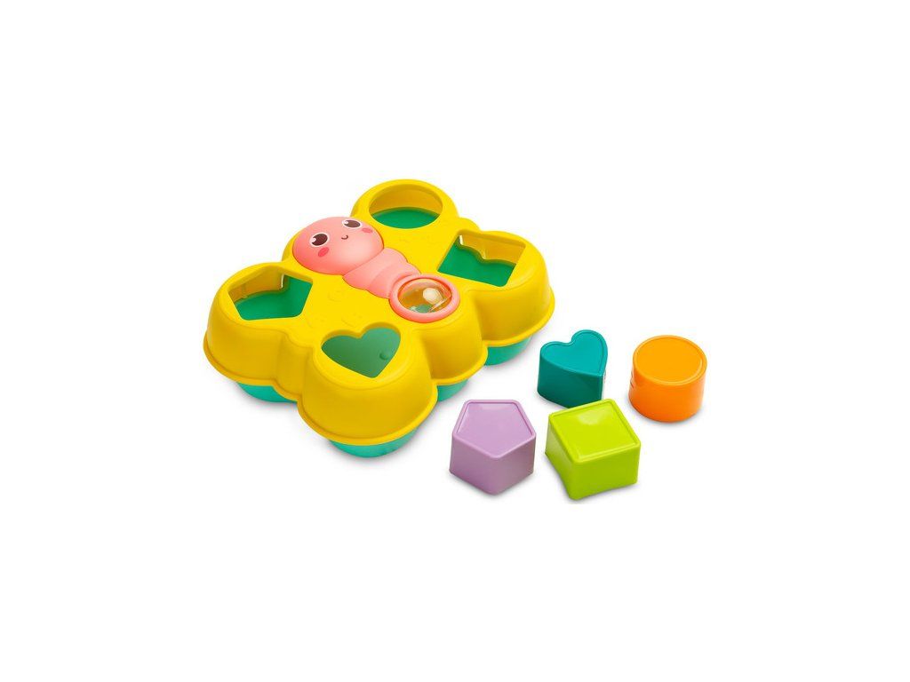 Vkladanka motýlik je skvelá logická hračka pre najmenších. Obsahuje 4 farebné bloky, ktoré sa vkladajú do otvorov vo veku. Motýľová usmievavá tvár sa dá otáčať a chvost obsahuje priehľadnú guľu naplnenú farebnými hrkajúcimi guličkami. Hračka je vhodná pre deti od 18 mesiacov.