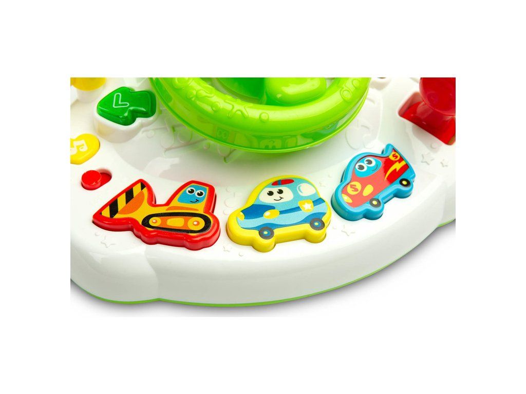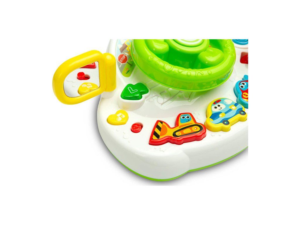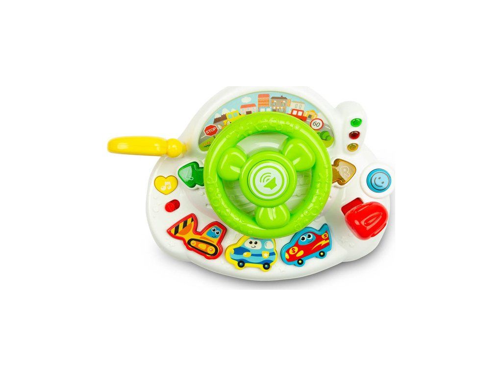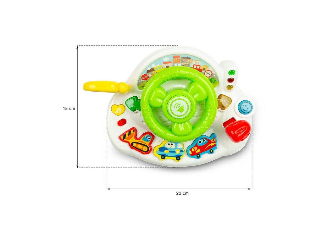 Vzdelávací volant od spoločnosti TOYZ je farebná hračka, ktorá vášmu batoľaťu skráti čas. Panel volantu obsahuje tlačidlá a svetlá, ktoré spolupracujú s reproduktorom, ktorý vydáva príjemné melódie a zvuky auta.