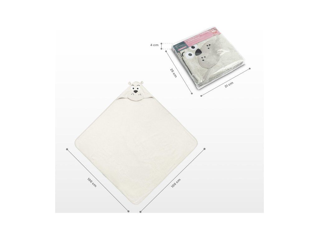 Detský uterák Sensillo. Na kapucni je veselý obrázok zvieratka. Je vyrobená z mäkkého, príjemného, savého a kvalitného froté materiálu, takže je ideálna pre bábätká a staršie deti. Osuška krásne zahreje dieťa po kúpaní a kapucňa chráni hlavičku dieťaťa. Rozmery 100 × 100 cm. 100 % bavlna. 100% bavlna.Dodatočné parametre