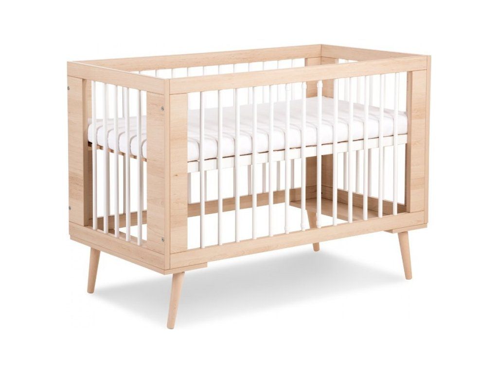 Moderná detská postieľka vyrobená z bukového a borovicového dreva v kombinácii s materiálom MDF.