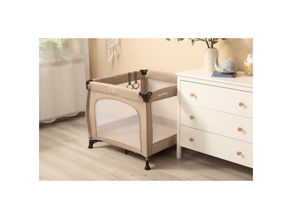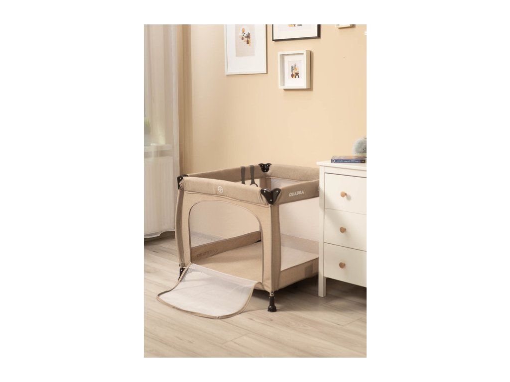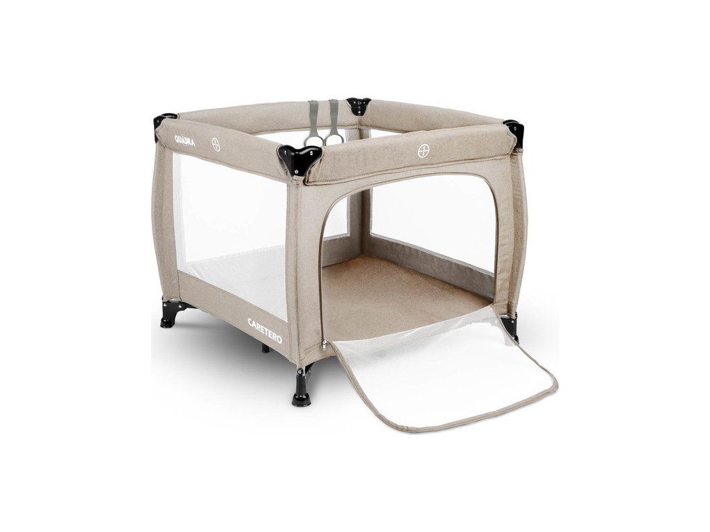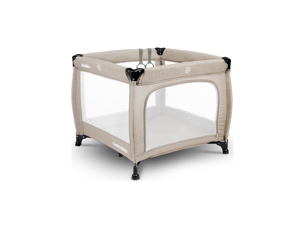Ľahká, praktická ohrádka CARETERO Quadra v tvare štvorca. Detská ohrádka má pestré farby a veselý obrázok na matraci. Súčasťou ohrádky sú aj 2 úchyty, ktoré pomáhajú dieťaťu, keď sa učí stáť. Ľahko a rýchlo sa skladá ako cestovná postieľka. Priehľadná sieťka po stranách umožňuje dieťaťu sledovať svoje okolie. Ohrádka obsahuje praktické bočné dvierka.- určená pre deti do 15 kg