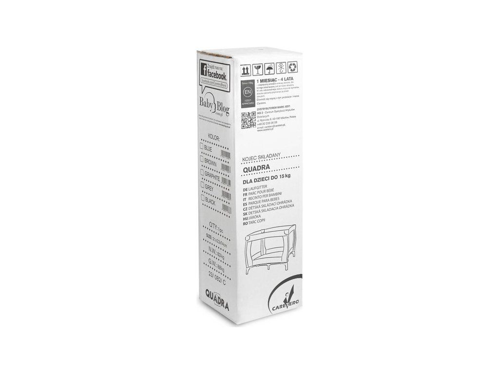 Lehká, praktická, dětská ohrádka čtvercového tvaru CARETERO Quadra. Ohrádka pro miminka má pestré barvy a veselý obrázek na matraci. Součástí ohrádky jsou také 2 úchyty, které pomáhají dítěti, když se učí vstávat. Jednoduché a rychlé skládání jako u cestovní postýlky. Průhledná síťka na bočních stranách umožňuje dítěti sledovat okolí. Součástí ohrádky jsou praktická boční dvířka. Ohrádku lze složit a zabalit do přiložené tašky.