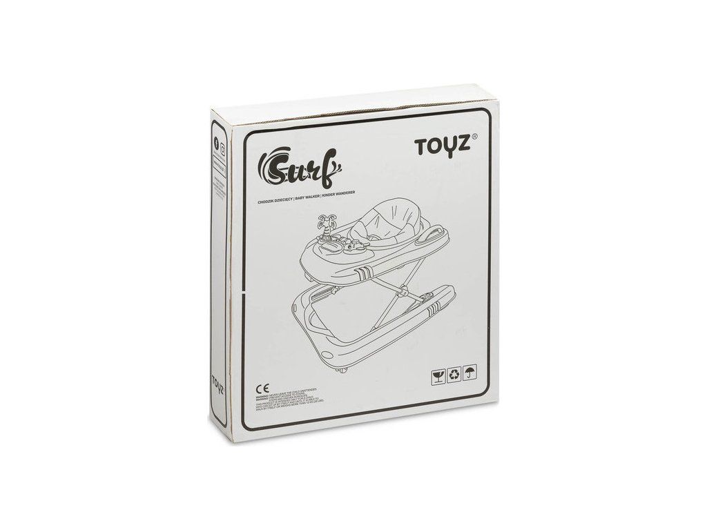 Surf je chodítko pre deti, ktoré sa chcú hrať. Vyznačuje sa bezpečnosťou zaistenou špeciálnou konštrukciou, ktorá umožňuje prispôsobiť sedačku výške dieťaťa - aby sa chodidlá mohli voľne dotýkať zeme. Pohodlie zaručuje chrbtová opierka chodítka, ktorá má anatomicky prispôsobený tvar telu. Sada hračiek umiestnených na chodítku zaujme detskú pozornosť a napomôže správnemu vývoju a panel s melódiami upúta pozornosť bábätka. Vďaka držadlám umiestneným v zadnej časti chodítka po vybratí sedátka poslúži hračka dieťaťu ako pohodlné odrážadlo.