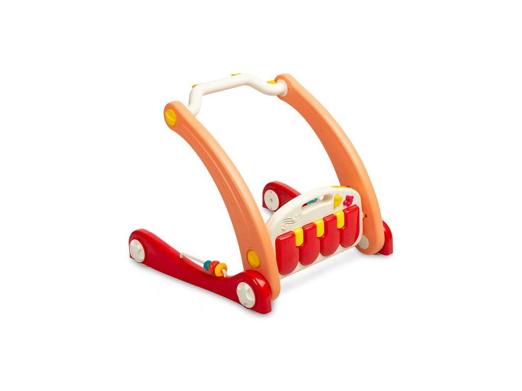 Hudobné chodítko 2 v 1 je farebná hračka pre bábätká, ktoré robia svoje prvé krôčiky. Podložka je vybavená čelenkou, na ktorej visia hrkálky v tvare priateľských zvieratiek a zrkadlom, ktoré poteší bábätko. Po uvoľnení predných kolies a odobratí podložky môže dieťa bez problémov riadiť svoje odrážadlo. Multimediálny panel s veľkými tlačidlami spríjemní hranie a zmyslové hračky namontované po stranách pomôžu rozvoju dieťaťa. Hračka je vhodná pre deti od prvých okamihov života.
