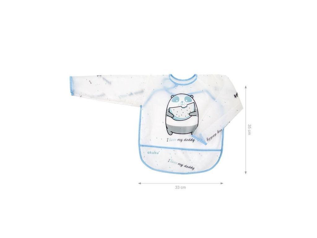 Farebný detský podbradník Akuku s rukávmi a vreckom účinne chráni oblečenie vášho dieťaťa pred zašpinením počas jedla alebo hry. Je vyrobený z ľahkého, mäkkého a ľahko umývateľného materiálu EVA (etylénvinylacetát). Vybavený veľkým vreckom na zachytenie zvyškov jedla. Jednoduché zapínanie na suchý zips. Ľahko sa udržiava v čistote. Podbradník odporúčame umyť ihneď po jedle teplou vodou a detským mydlom.
