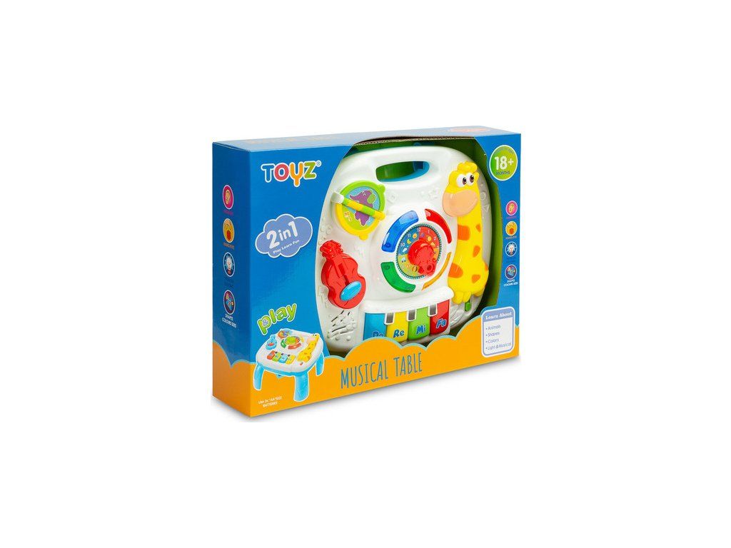 Vzdelávací hudobný stolík od spoločnosti TOYZ je skvelou zábavou pre každé dieťa. Hračka je vybavená reproduktorom, ktorý prehráva mnoho melódií, keď sa dieťa dotkne jeho prvkov. Batérie 3 x AA nie sú súčasťou dodávky-