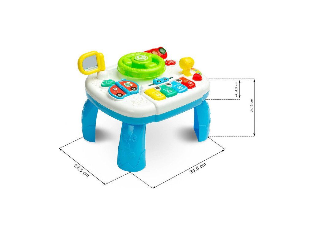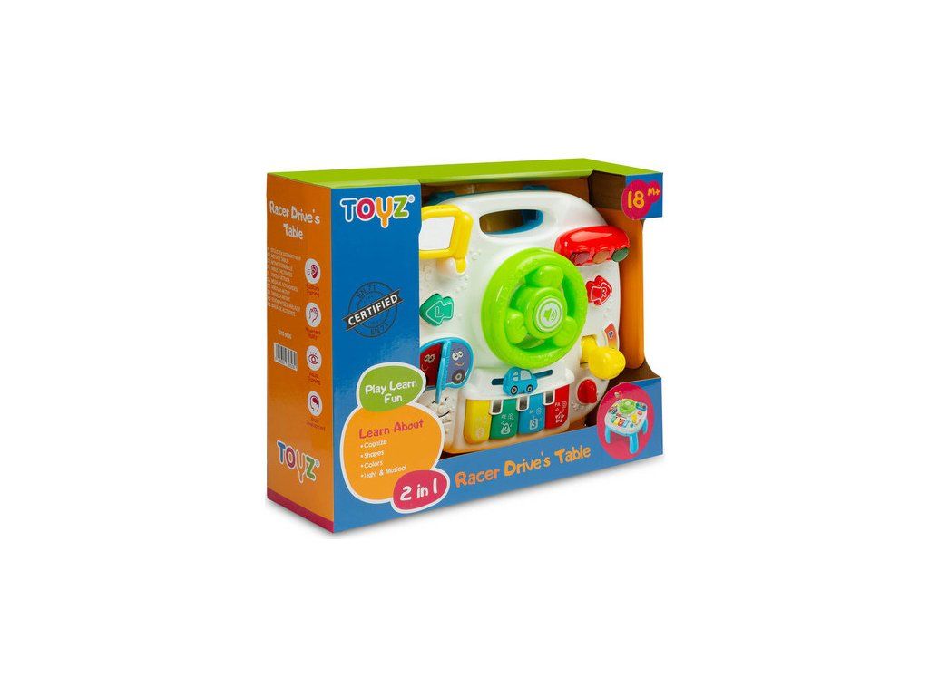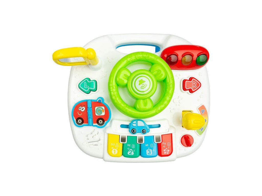 Detský interaktívny stolček TOYZ volant vášmu dieťaťu poskytne hodiny skvelej zábavy. Stôl je vybavený tlačidlami a svetlami, ktoré spolupracujú s reproduktorom, ktorý vydáva príjemné melódie a zvuky auta.