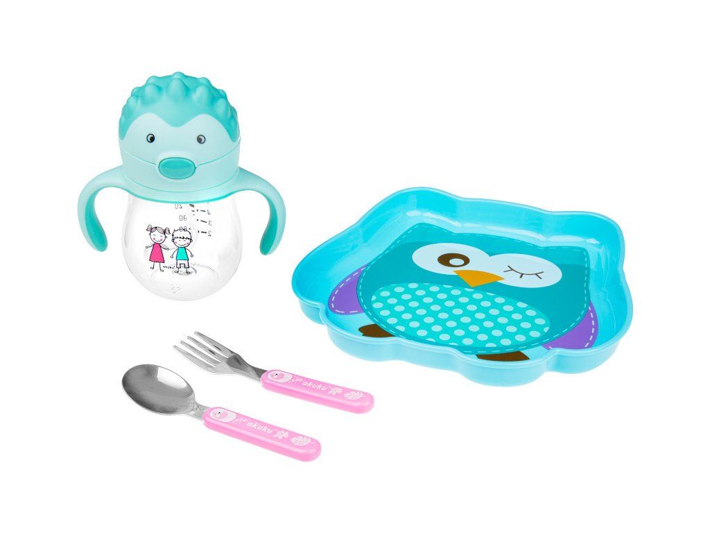 Predstavujeme plastový tanier AKUKU. Bol navrhnutý tak, aby svojimi tvarmi a farbami motivoval dieťa k samostatnosti pri jedení. Je vyrobený z bezpečných materiálov určených na styk s potravinami. K dispozícii je v dvoch dizajnoch - sloník a sova.
