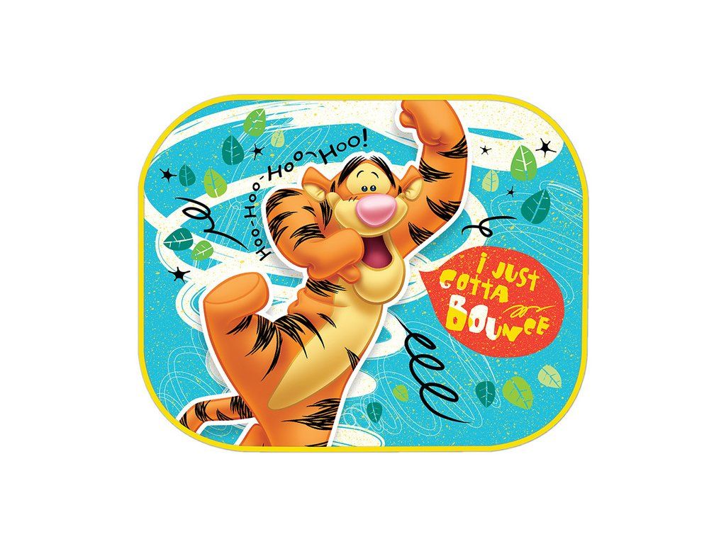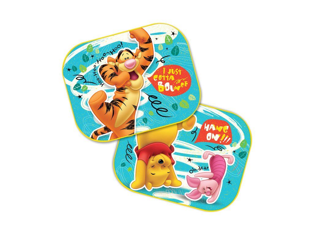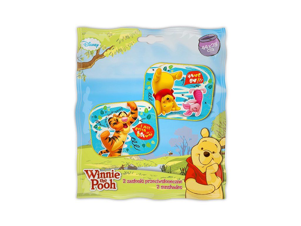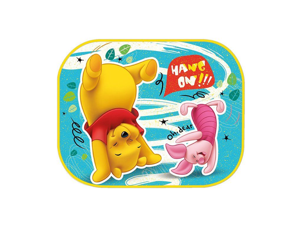 Bočné tienidlo do auta - Medvedík Pú.Dva kusy slnečnej clony - textilné s pevným okrajom, obe clony majú rovnaký obrázok. Pripevňuje sa priamo na okno pomocou prísavky. Jedna slnečná clona má jednu prísavku. Okraj clony je vystužený.
