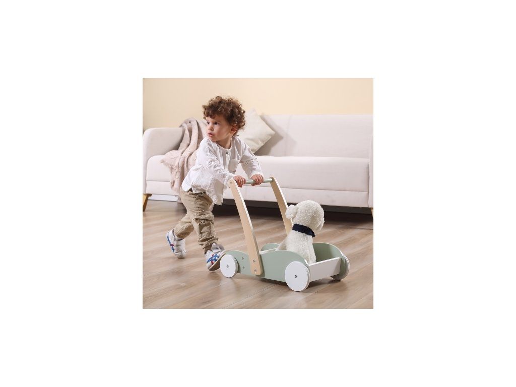 Hračka s jednoduchým dizajnom je navyše vybavená veľkými protišmykovými kolesami a stabilnou pevnou rukoväťou. Veľký úložný priestor umožňuje prepravu hračiek rôznych veľkostí a množstiev.
