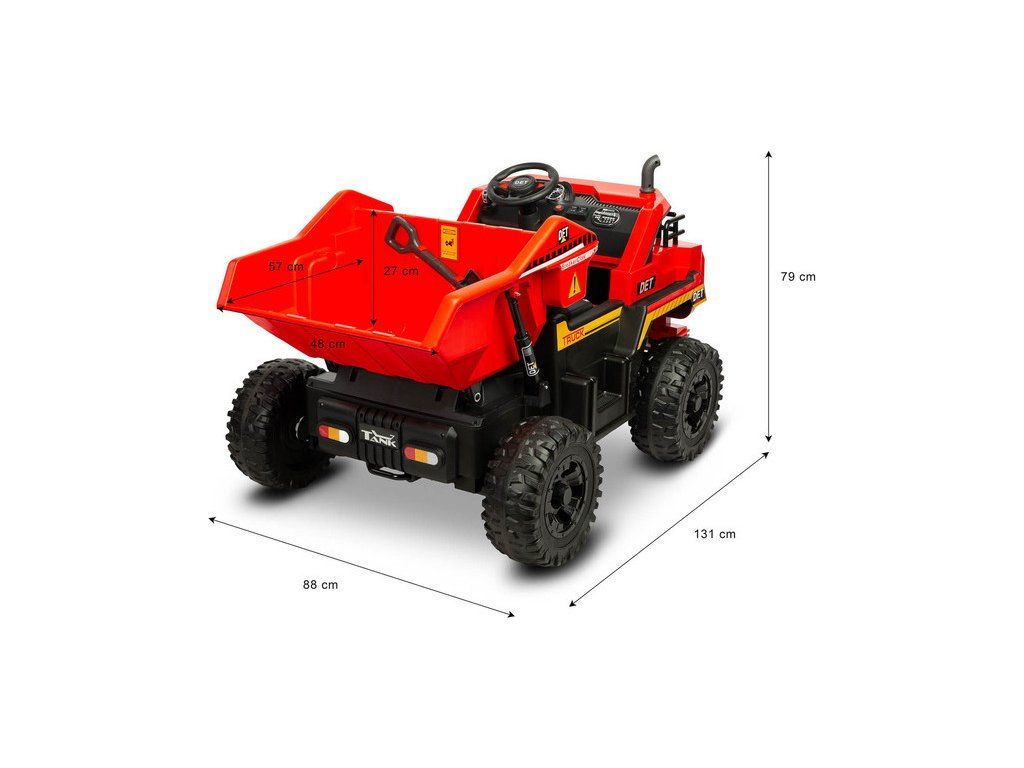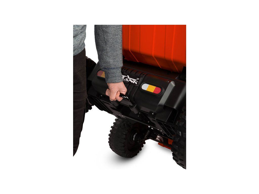 Tank je vozidlo na batérie, ktoré je skutočným sklápačom. Vďaka nej môže každé dieťa zažiť nezabudnuteľné dobrodružstvo ako vodič sklápača. Najväčšiu zábavu prináša veľkosť samotného vozidla, zvuk štartujúceho silného motora pri naštartovaní a predovšetkým veľká nákladná skriňa, ktorá sa elektricky spúšťa . Obsahuje lopatu, ktorú je možné kopák naložiť. Zábavu navyše umocní multimediálny panel s Bluetooth. Terénne EVA penové kolesá a 4 výkonné motory umožňujú jazdu s nákladom v ťažkom teréne. Jazdný komfort zaistí dvojité sedadlo z ekokože a predné a zadné tlmiče. Vozidlo má 2 rýchlosti a spiatočku. Bezpečnú hru zaisťuje pomalý rozjazd, automatická brzda a brušné bezpečnostné pásy. Sklápačku môže ovládať aj rodič pomocou diaľkového ovládača.