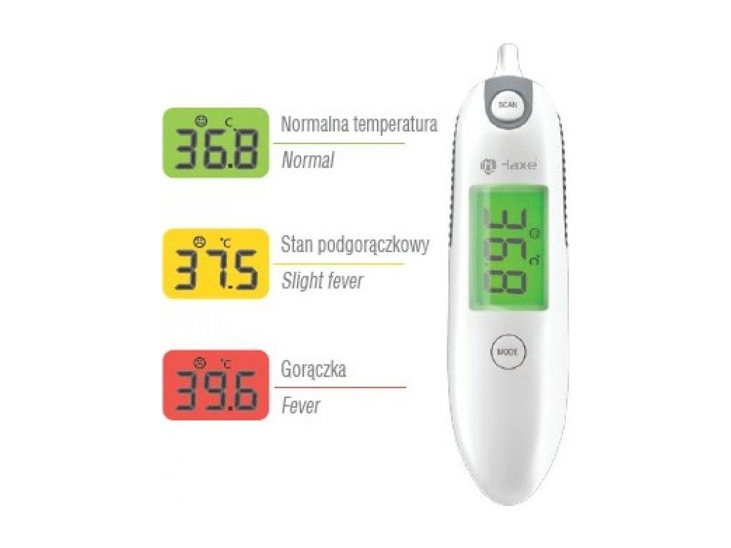 - Je to multifunkčný prístroj, môžete merať teplotu objektu, vzduchu a tela v uchu a na čele. Nepotrebujete už žiadne ďalšie teplomery.