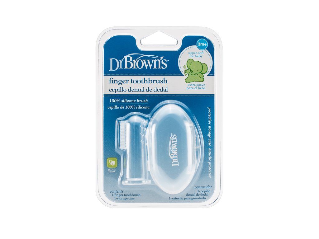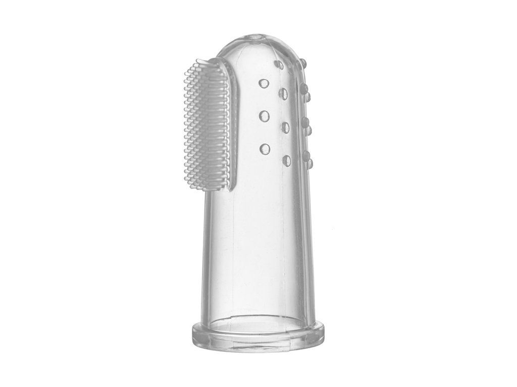 Môže sa používať s detskou zubnou pastou alebo bez nej. Používa sa na prst. Má ochranný kryt.