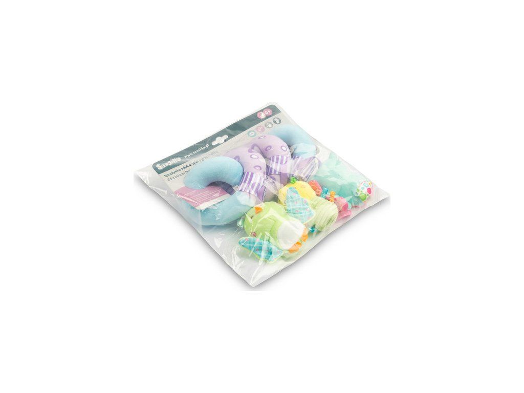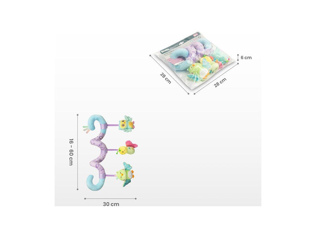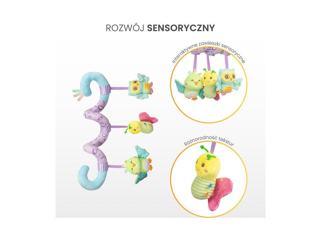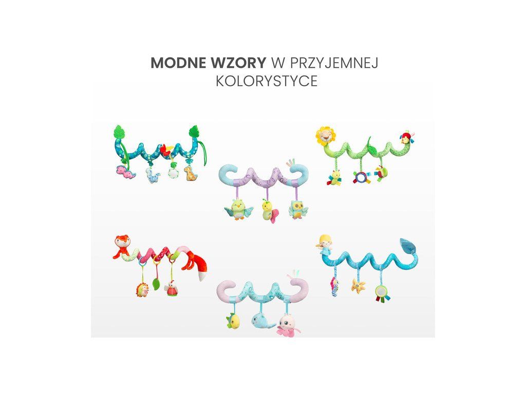 Špirálová plyšová hračka Sensillo vo veselých farbách pre vaše dieťa. Hračka rozvíja zmyslové vnímanie dieťaťa a stimuluje jeho predstavivosť. Vďaka špirálovému tvaru ju možno pripevniť na postieľku, autosedačku alebo kočík. Hračka hrká a šuští. Rozmery cca 20x30 cm.