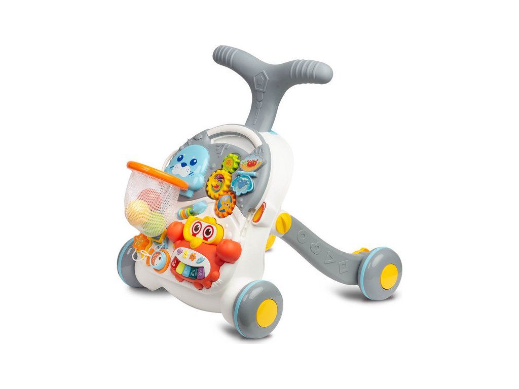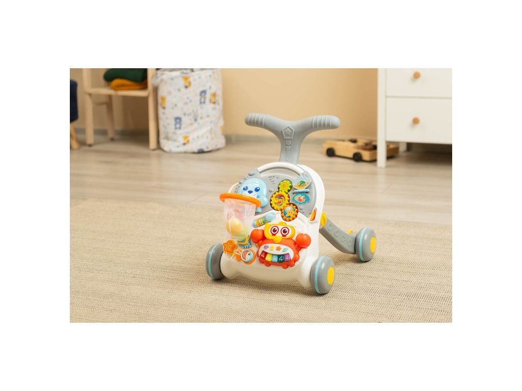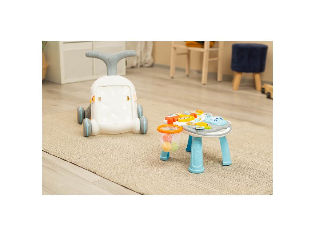 Spark je vzdelávacia hračka z radu TOYZ Activity, ideálna pre dieťa, ktoré už začalo robiť prvé krôčiky. Vďaka kombinácii niekoľkých možností v jednej hračke zabaví vaše batoľa na mnoho hodín. Dá sa použiť ako odrážadlo alebo interaktívny stôl s množstvom atrakcií. Čas spríjemní košík, do ktorého môže vložiť 3 plastové loptičky s hrkálkou, batériové a odnímateľné piano v tvare kraba, točiace sa ozubené kolesá a mnoho ďalších prekvapení. Predný panel je možné sňať a premeniť na hrací stolík.