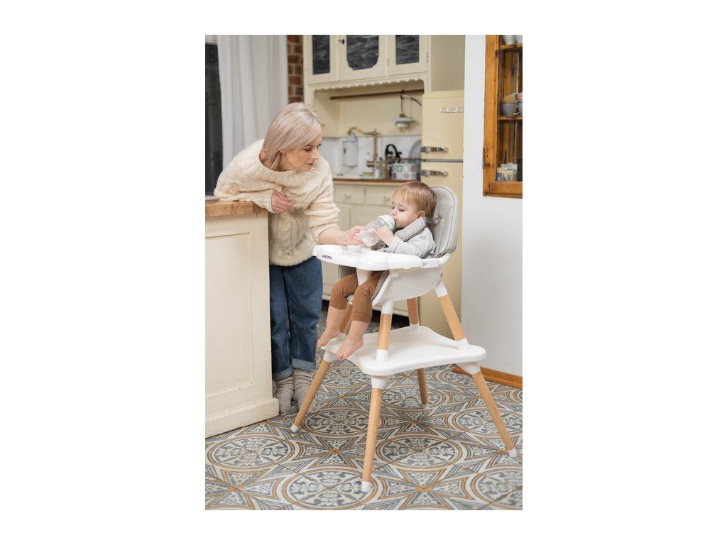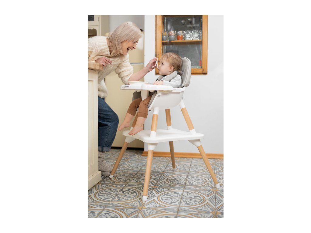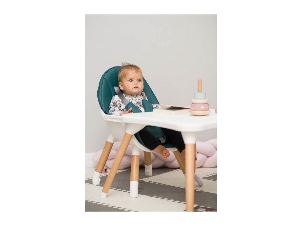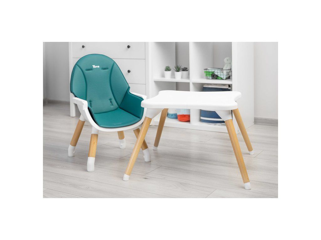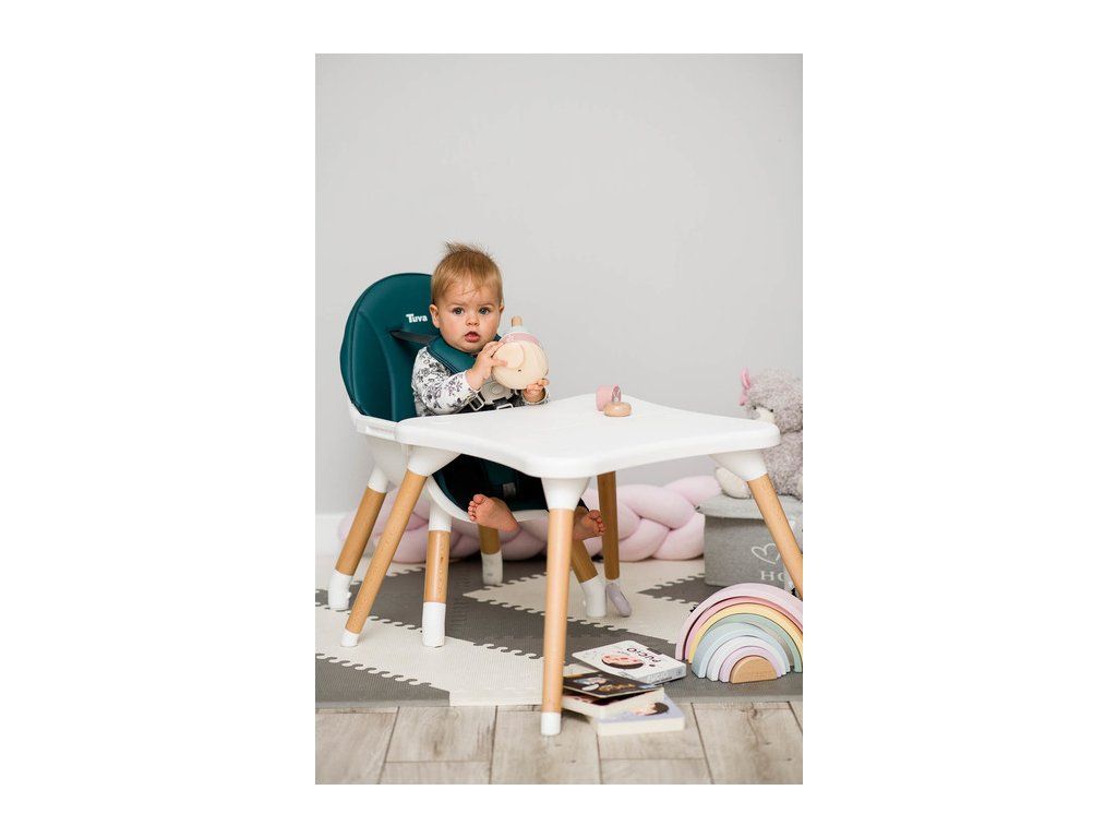 Stolička Tuva spája jedinečný škandinávsky štýl s funkčnosťou. Vďaka jednoduchému dizajnu ju možno rýchlo prispôsobiť potrebám vášho dieťaťa. V niekoľkých krokoch (bez odstránenia nožičiek) sa premení z vysokej stoličky na štýlovú stoličku + stolík. Tuva je vyrobená z vysokokvalitných materiálov, vďaka ktorým je odolná a bezpečná. Má päťbodové bezpečnostné pásy a dodatočné zabezpečenie na pulte, ktoré zabraňuje skĺznutiu dieťaťa. Stolička sa stará o pohodlie dieťaťa a rodičov, má dvojitý nastaviteľný pultík s dvoma priestormi na poháre. Sedadlo je potiahnuté mäkkým a ľahko čistiteľným čalúnením. Drevené nohy sú zakončené protišmykovými chráničmi, ktoré plne chránia podlahu pred poškriabaním.