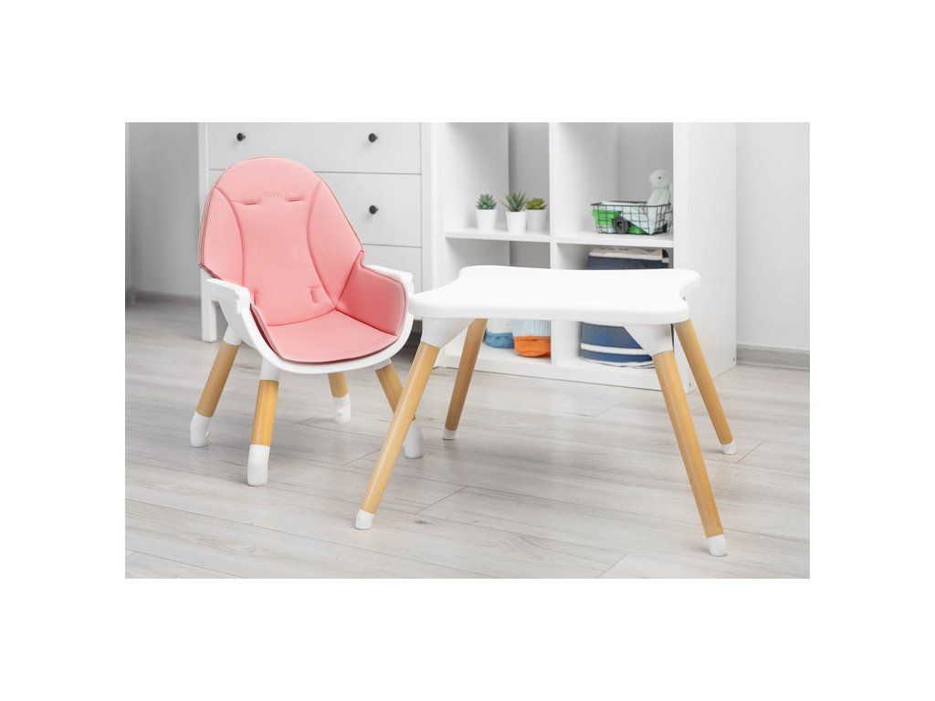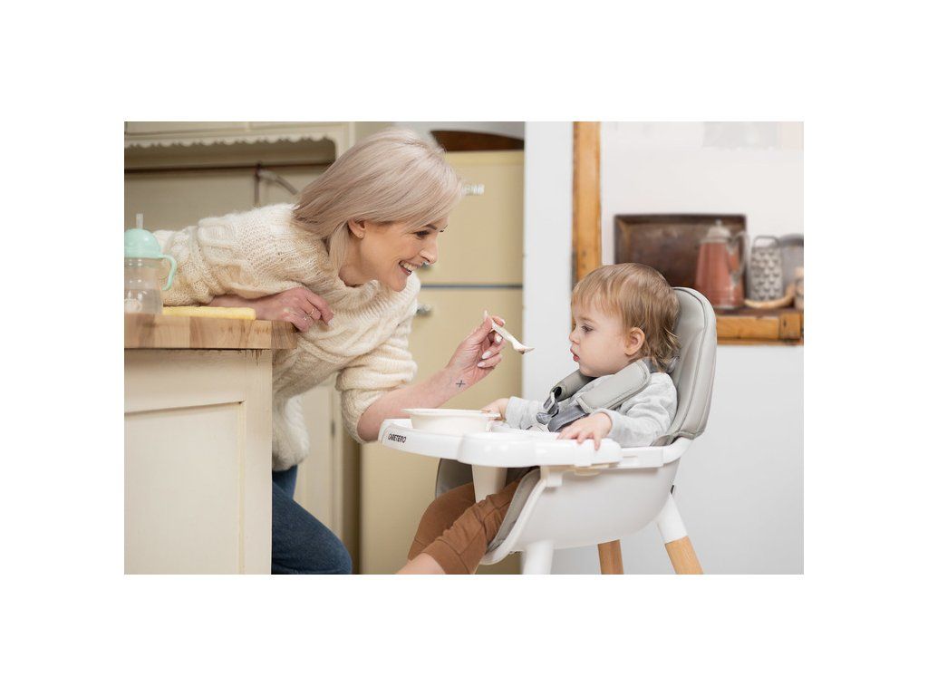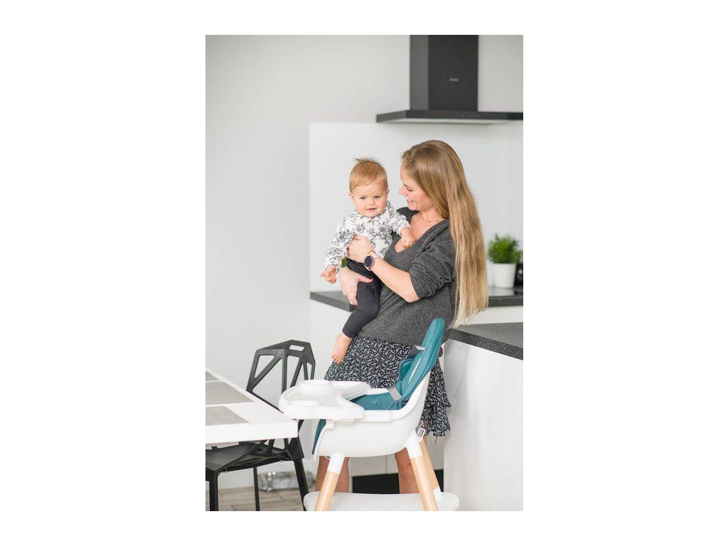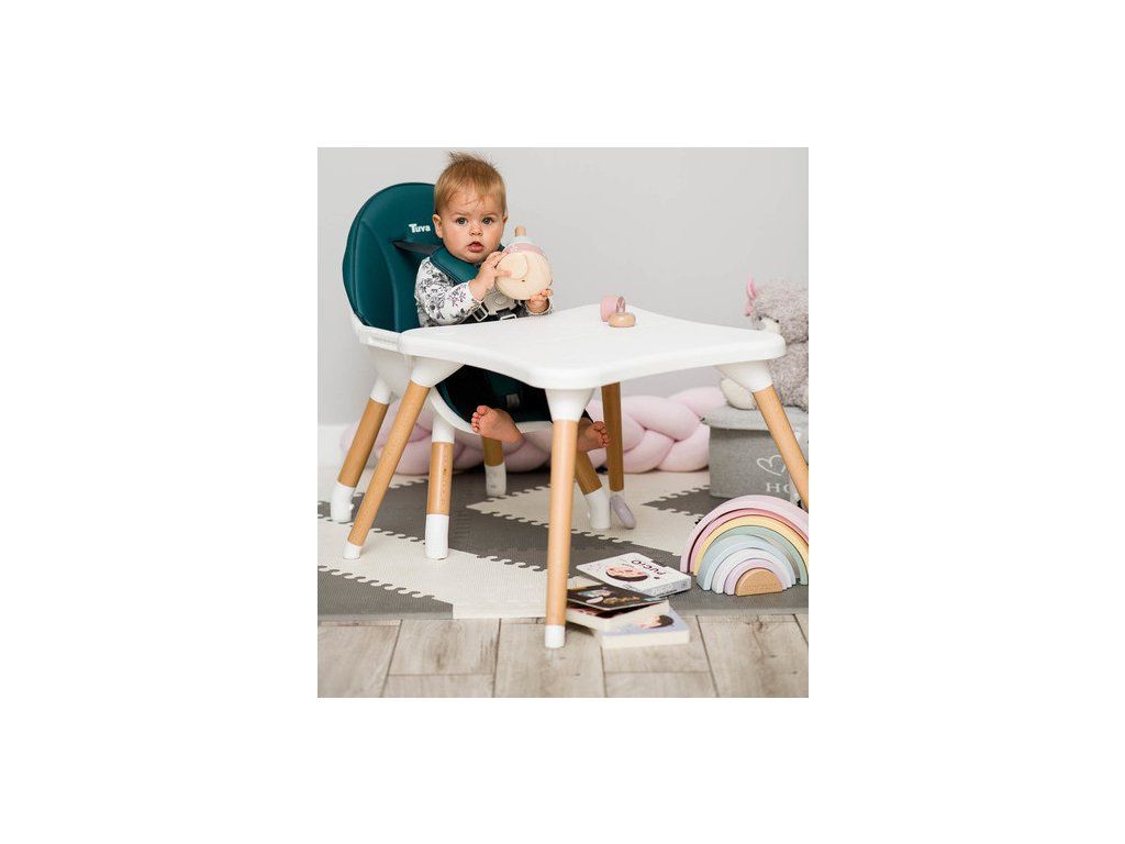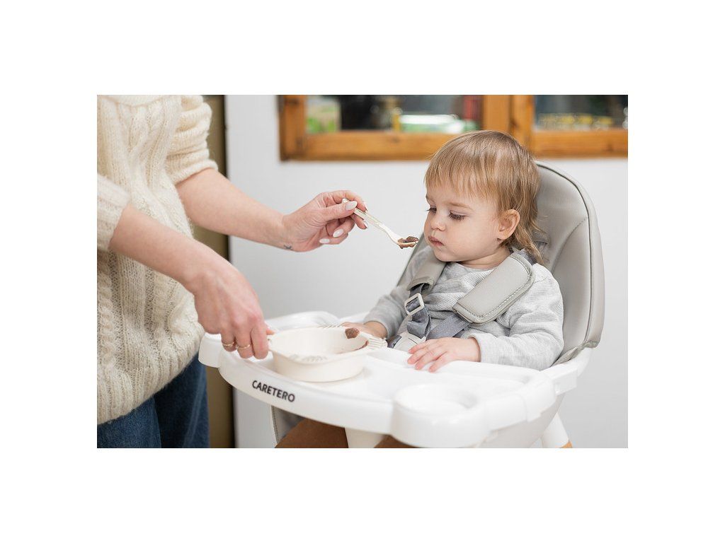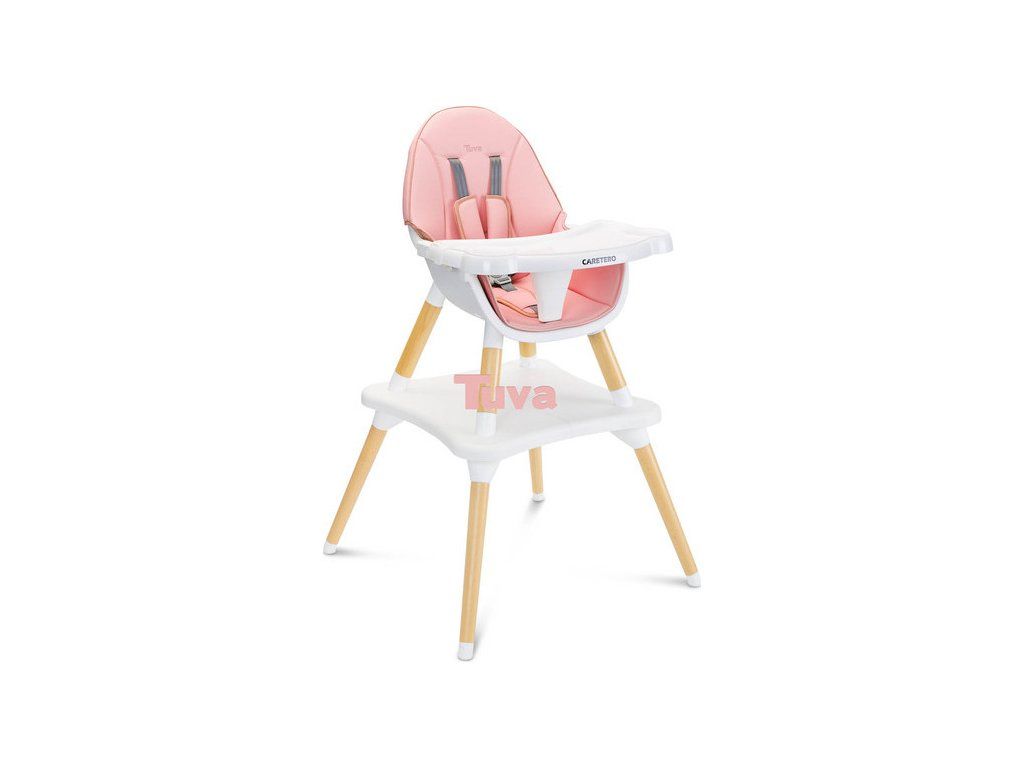 Caretero Tuva je stolička na kŕmenie, ktorá kombinuje jedinečný škandinávsky štýl s funkčnosťou. Vďaka jednoduchému dizajnu ich možno rýchlo prispôsobiť potrebám dieťaťa. Len niekoľkými pohybmi (bez demontáže nôh) sa z vysokej stoličky premení na štýlovú zostavu stoličky + stôl. Tuva je vyrobená z vysoko kvalitných materiálov, vďaka čomu je odolná a bezpečná. Má päťbodový pás a ďalšie zabezpečenie na podnose, ktoré zabraňuje skĺznutiu dieťaťa. Kreslo dbá na pohodlie dieťaťa i rodičov a má dvojitú, polohovateľnú tácku s dvoma miestami na šálku. Sedák je potiahnutý mäkkým a ľahko čistiteľným čalúnením. Drevené nohy sú zakončené protišmykovými podložkami , ktoré plne chránia podlahu pred poškriabaním.