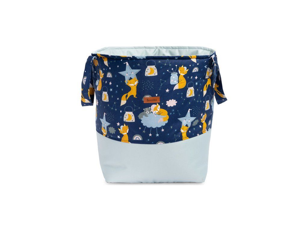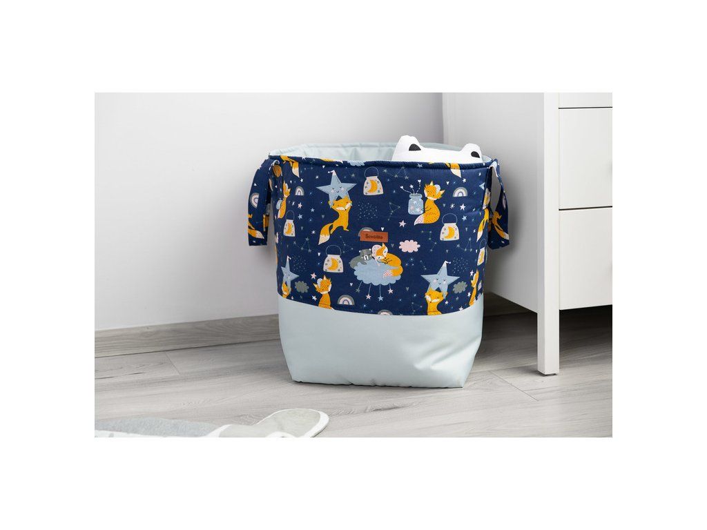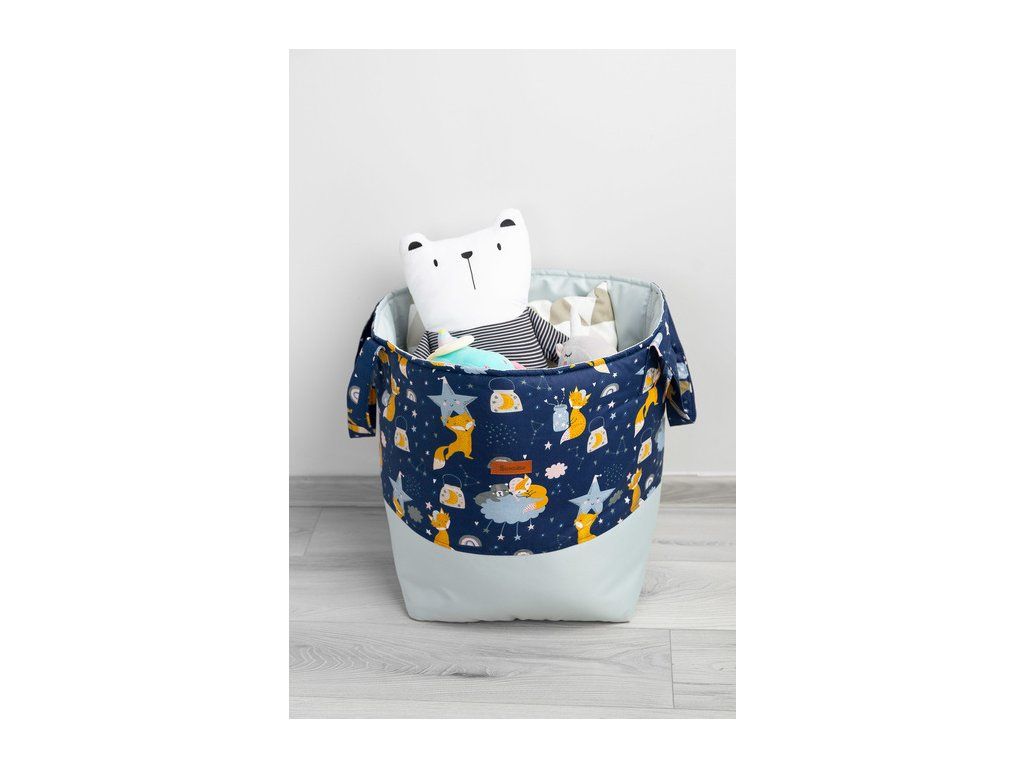 Stredne veľký kôš na hračky Sensillo je veľmi priestranný a extrémne odolný. Vďaka štvorcovej základni pojme viac ako štandardné koše. Jeho rukoväte sú vo vnútri vystužené popruhovou páskou, takže sa nebojí veľkého množstva hračiek. Spodná časť koša a jeho vnútro sú vyrobené z odolného polyesterového materiálu, ktorý nie je náchylný na odery, zatiaľ čo horná časť je zdobená farebnou bavlnou, ktorá dodáva jedinečné kúzlo a robí kôš ozdobou detskej izby. Funguje tiež skvele ako kôš na bielizeň alebo organizér na iné predmety. Bol vystužený vrstvou silikónovej netkanej textílie, vďaka ktorej si zachováva svoj tvar av prípade potreby ho možno zložiť a uložiť do zásuvky.