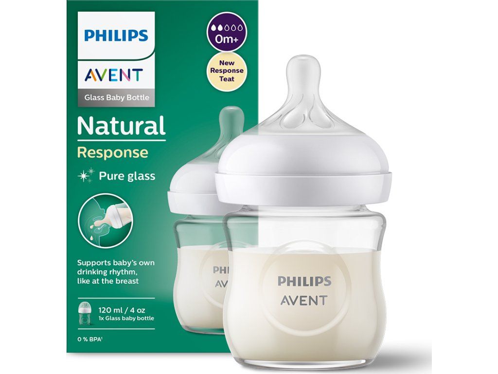Sklenená fľaša Natural Response podporuje rytmus pitia samotného dieťaťa, ako je to pri prsníku. Nový cumlík k detským fľaštičkám Natural Response umožňuje dieťaťu sať, prehĺtať a dýchať. Antikolikový ventil je navrhnutý tak, aby počas kŕmenia nevnikal do bruška dieťaťa vzduch a znížilo sa tak riziko koliky a bolesti. Neobsahuje BPA. Je možné kombinovať s ostatnými výrobkami Avent Natural.