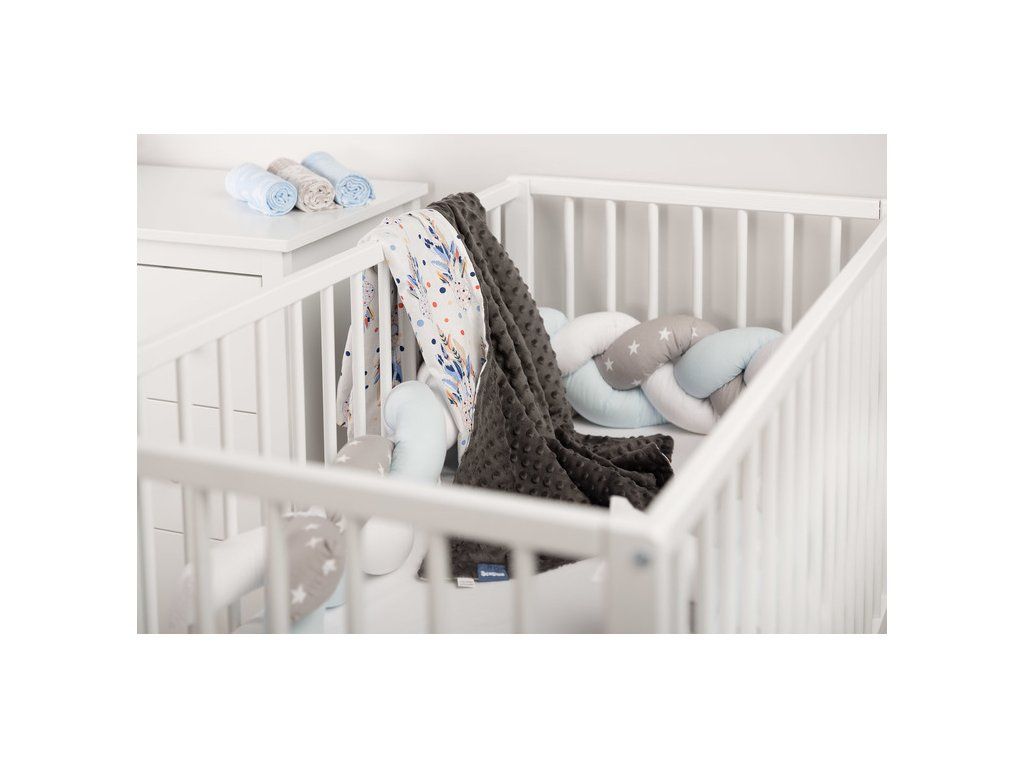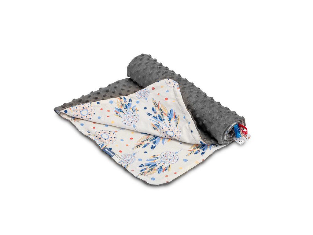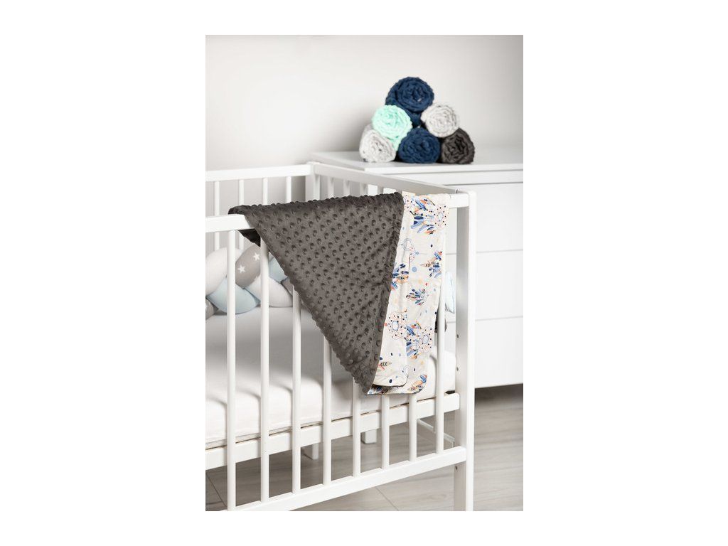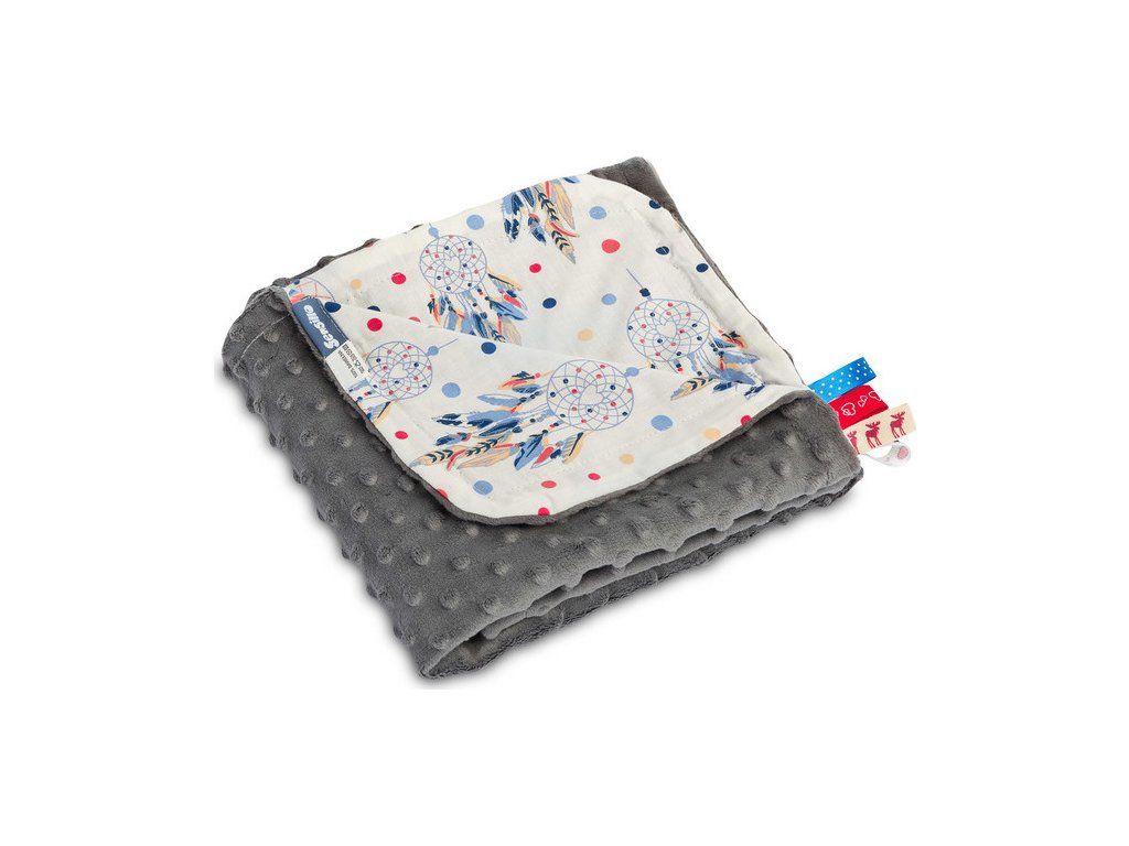 Ľahká deka Minky je ideálnym riešením na jarné a letné prechádzky. Je vyrobená z mäkkej bavlny a jemnej minky tkaniny, podľa potreby sa dá použiť obojstranne. Každý vzor deky má inú farebnú potlač. Na deke sú aj farebné stužky, ktoré zaujmú každé dieťa. Univerzálna ľahká deka do kočíka alebo postieľky s rozmermi 75 × 100 cm.