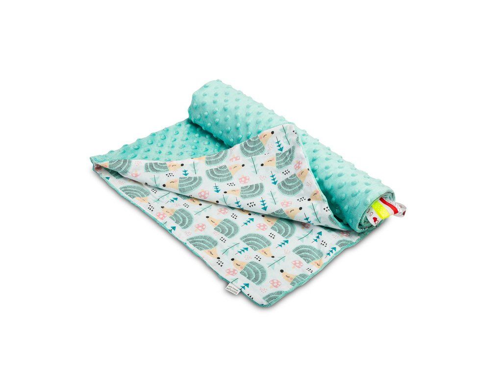 Ľahká deka Minky je ideálnym riešením na jarné a letné prechádzky. Je vyrobená z mäkkej bavlny a jemnej minky tkaniny, podľa potreby sa dá použiť obojstranne. Každý vzor deky má inú farebnú potlač. Na deke sú aj farebné stužky, ktoré zaujmú každé dieťa. Univerzálna ľahká deka do kočíka alebo postieľky s rozmermi 75 × 100 cm.