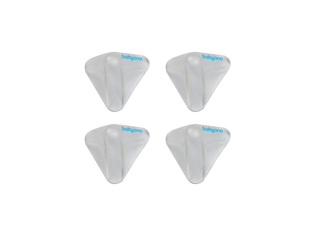 Široký sortiment zabezpečenia Baby Ono. Sada 4 plastových priesvitných trojuholníkov chráni rohy stolov a skriniek. Vyrobené z bezpečných a odolných materiálov. Odporúčané od 3 mesiacov veku dieťaťa.