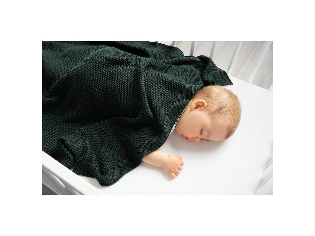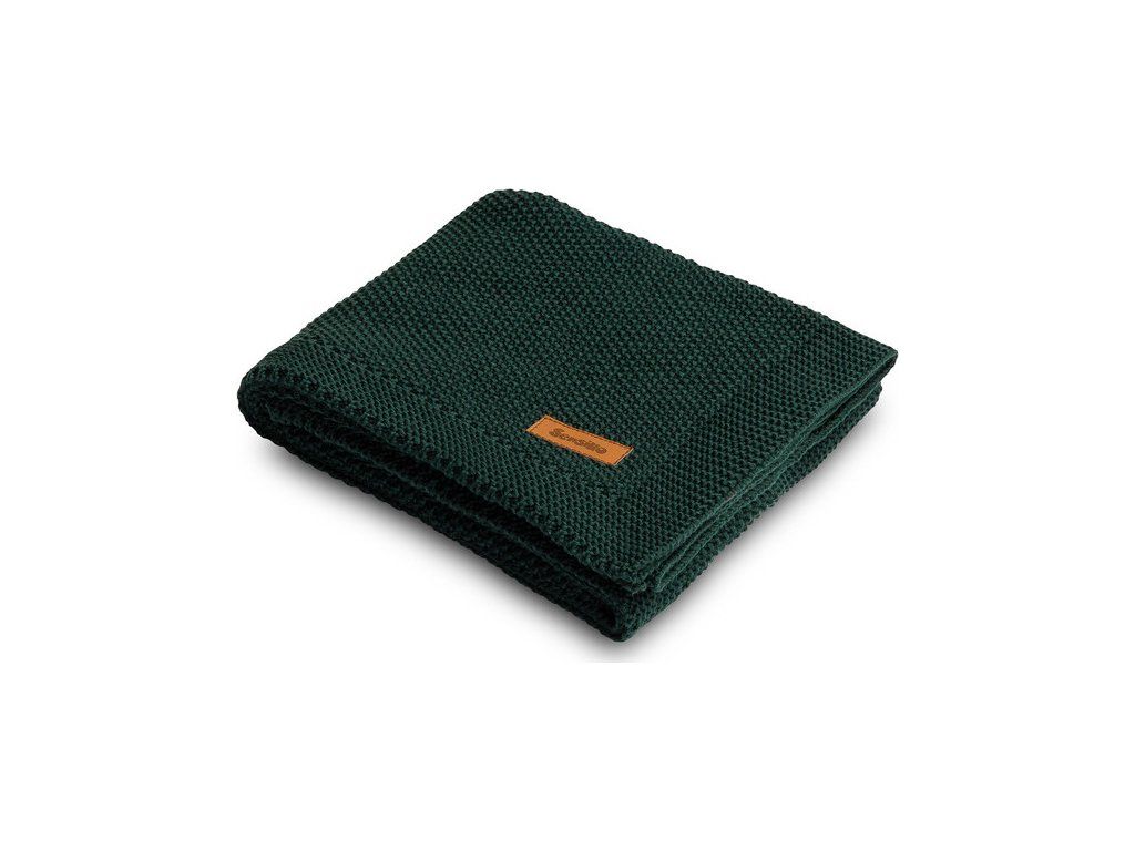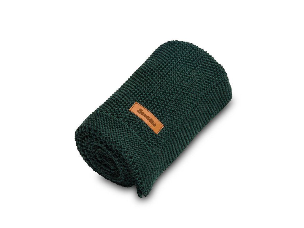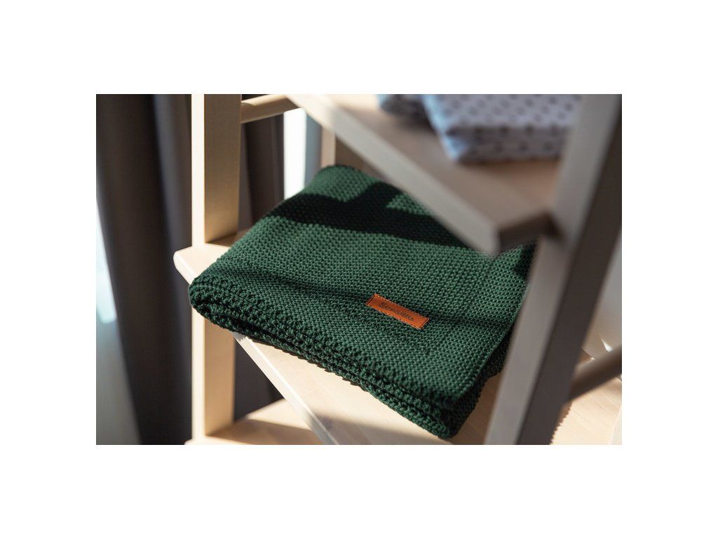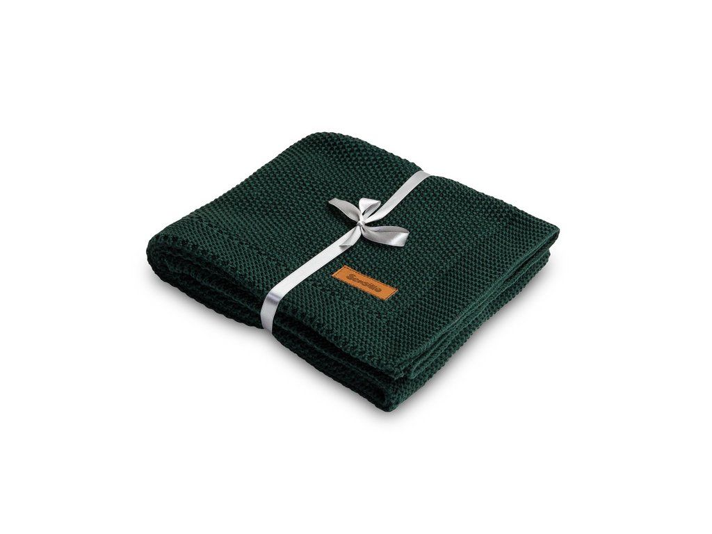 PLETENÁ BAVLNENÁ DEKA TMAVOZELENÁ 100 X 80