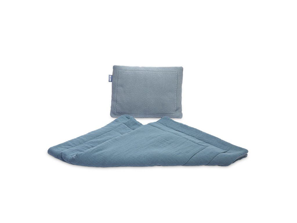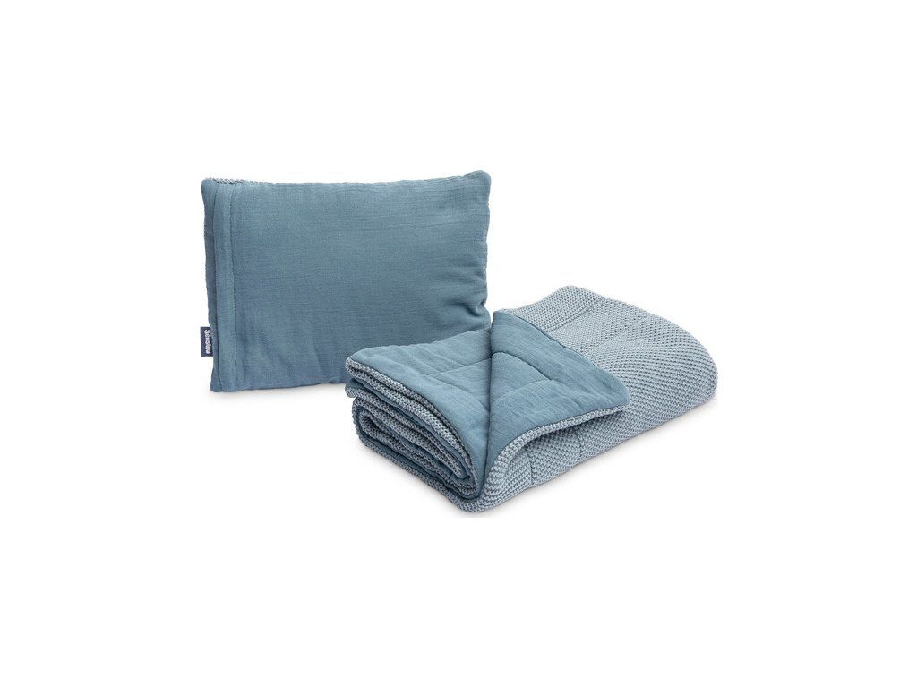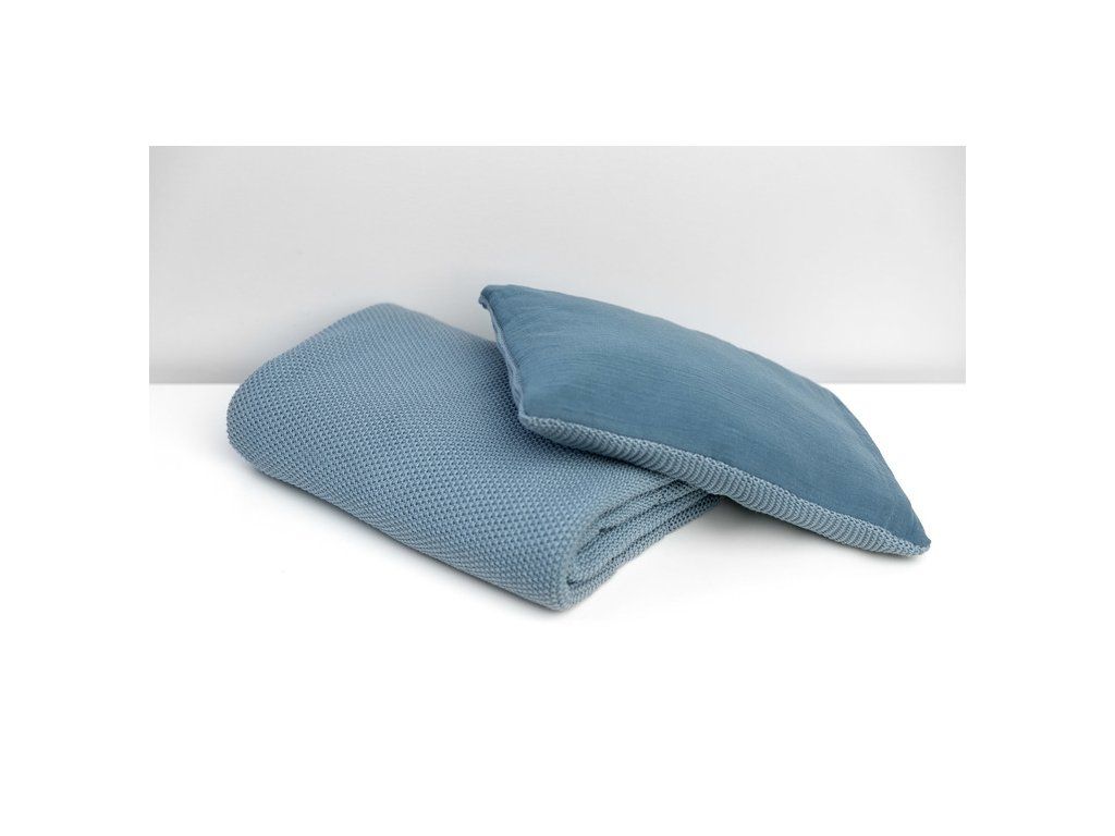 Pletená mušelínová súprava do postieľky a kočíka Sensillo modrá