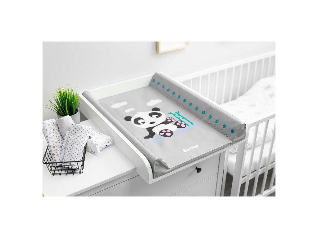 Prebaľovacia podložka Sensillo s profilovanými okrajmi z nepremokavého plastového materiálu, vyplnená molitanom, zdobená veselým obrázkom. Rozmer: šxd cca 49x70 cm, vnútorný rozmer: šxd cca 33,5x70 cm. Zloženie: PVC, výplň: polyuretánová pena.