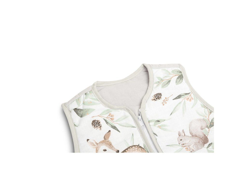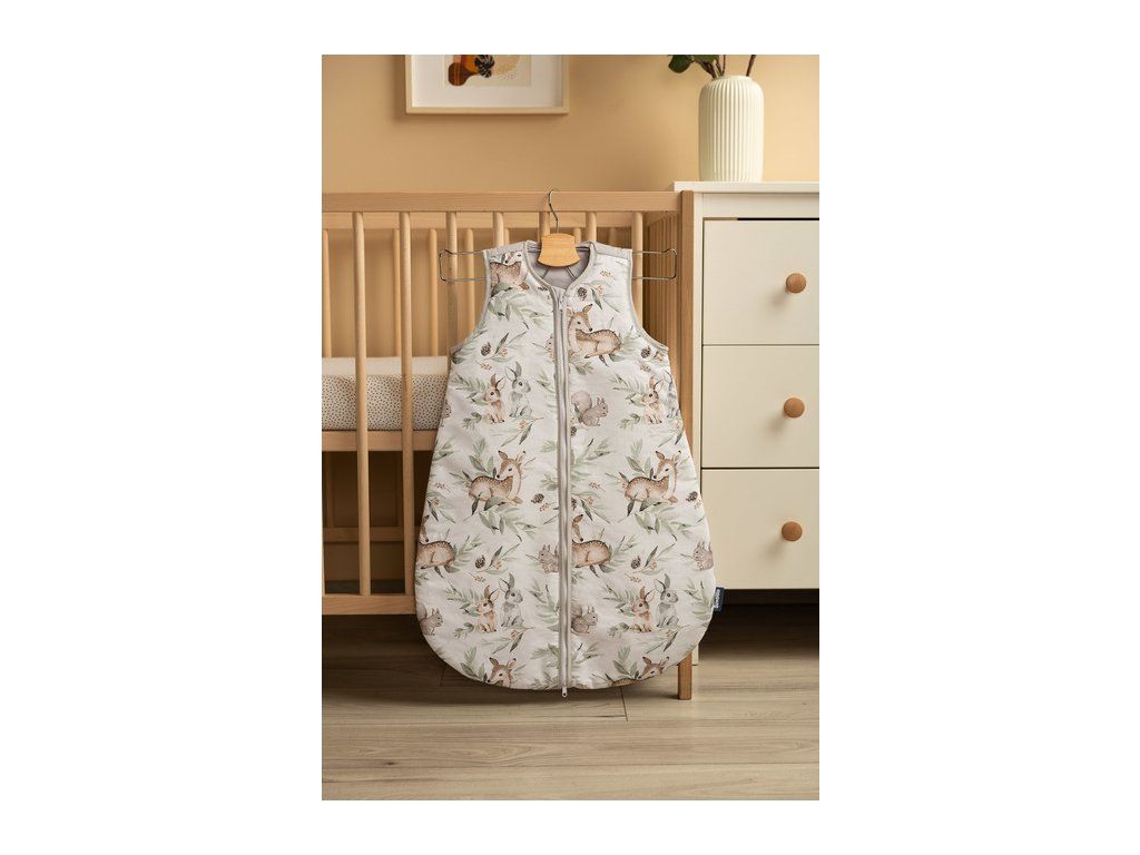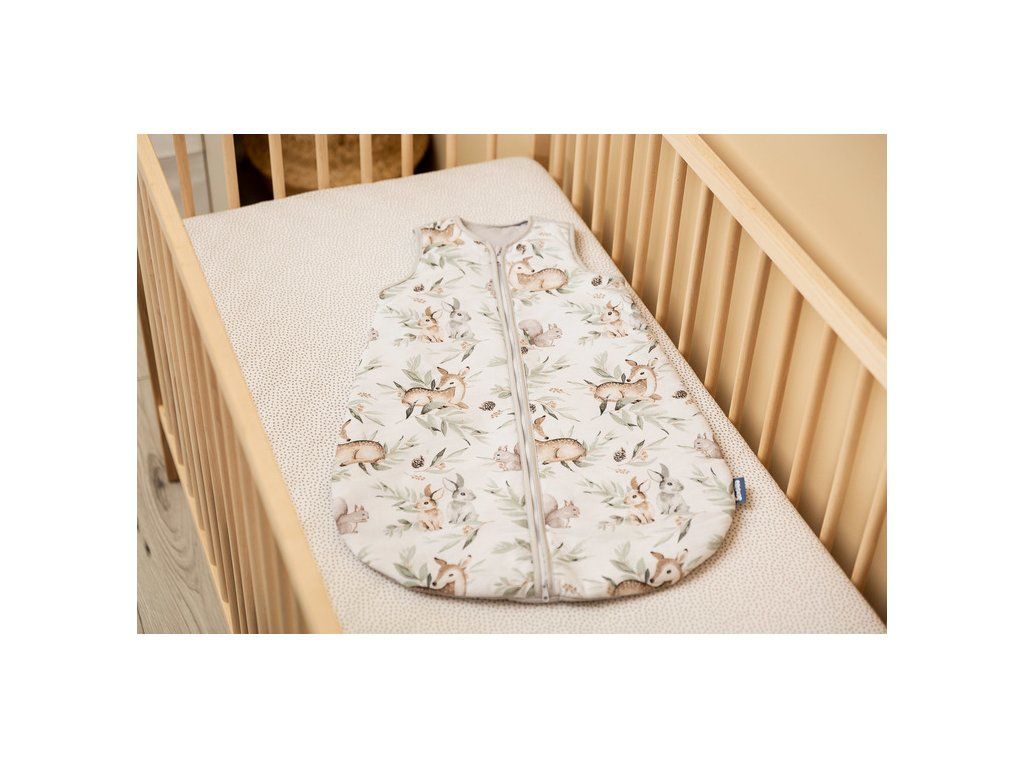 Spací vak bude slúžiť deťom od prvých dní života (0-9 mesiacov) a poskytne im teplo a bezpečie. Je vyrobená z mäkkej bavlny s lemom. Neobsahuje tvrdé prvky, ktoré dráždia detskú pokožku. Spací vak je vybavený obojstranným zipsom, zaisteným pri krku, umožňujúcim výmenu plienky bez vyberania bábätka zo spacieho vaku.