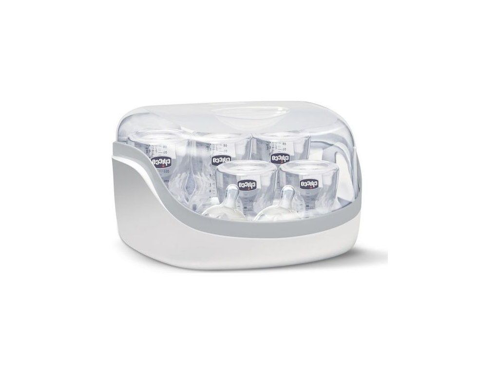 spĺňa potreby matky a dieťaťa. Sterilizátor do mikrovlnnej rúry je ľahko použiteľný prístroj, ktorý zabezpečuje bezpečnú a rýchlu dezinfekciu detských doplnkov. Mikrovlnný sterilizátor Chicco umožňuje sterilizovať fľaše, cumlíky a ďalšie príslušenstvo, ktoré chcete mať dokonale hygienické.