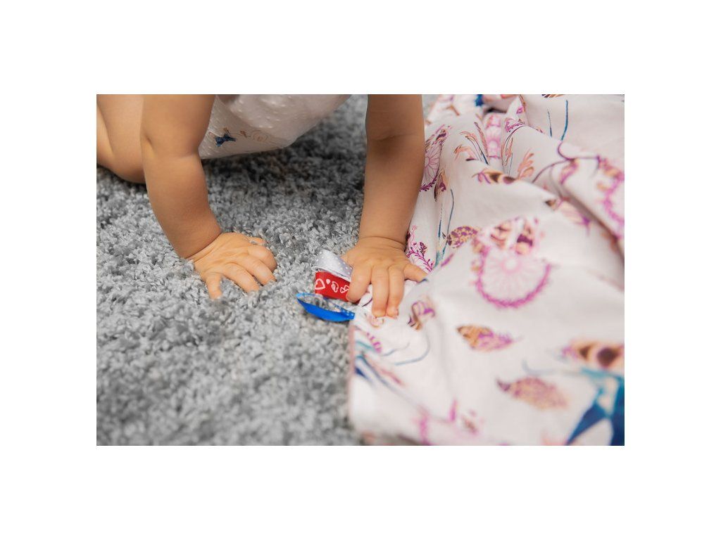 - na deku sme umiestnili farebné stuhy, ktoré upútajú každé bábätko