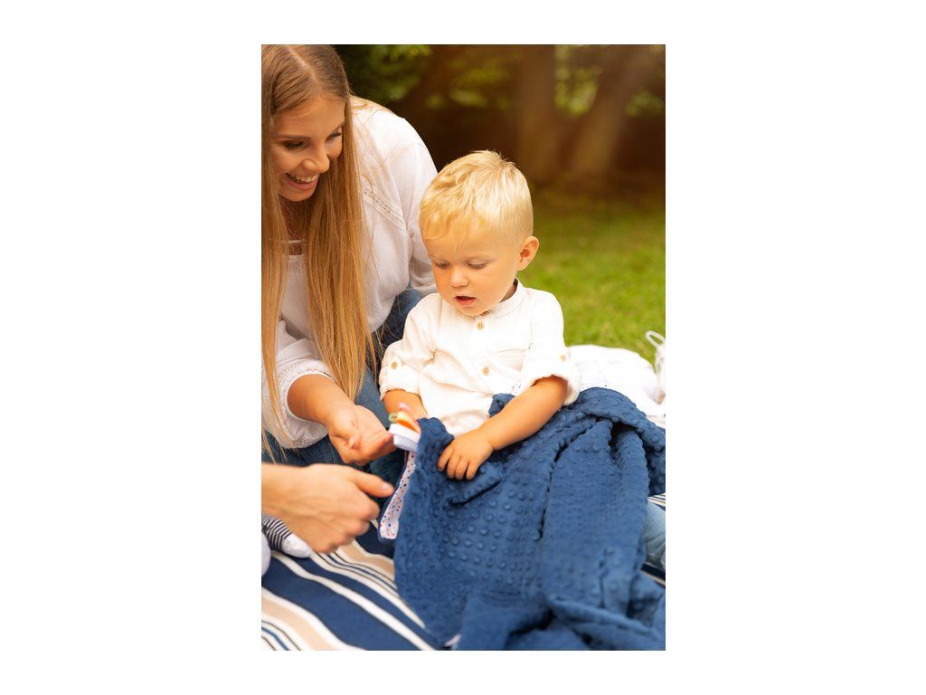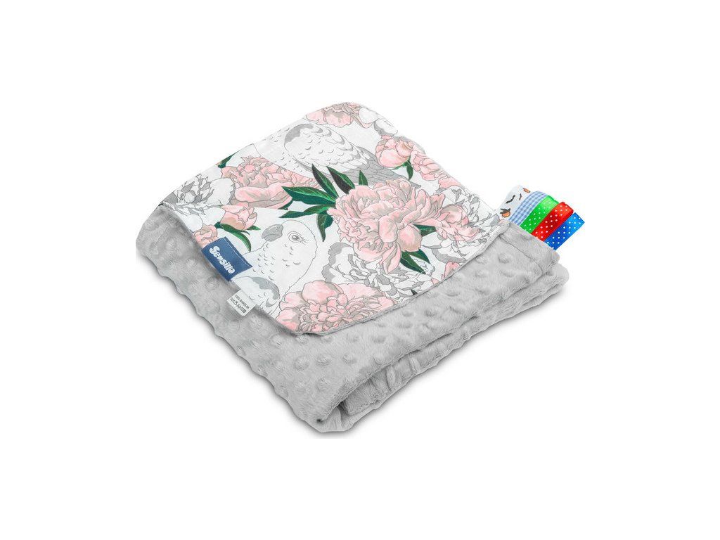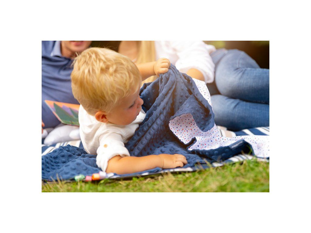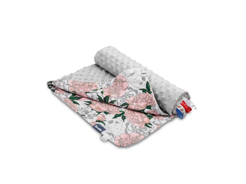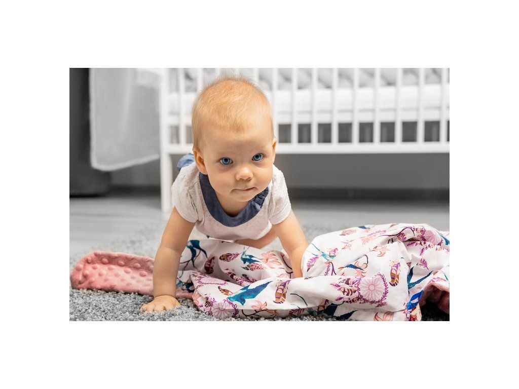 Ľahká deka Minky je ideálnym riešením na jarné a letné prechádzky. Je vyrobená z mäkkej bavlny a jemnej minky tkaniny, podľa potreby sa dá použiť obojstranne. Každý vzor deky má inú farebnú potlač. Na deke sú aj farebné stužky, ktoré zaujmú každé dieťa. Univerzálna ľahká deka do kočíka alebo postieľky s rozmermi 75 × 100 cm.