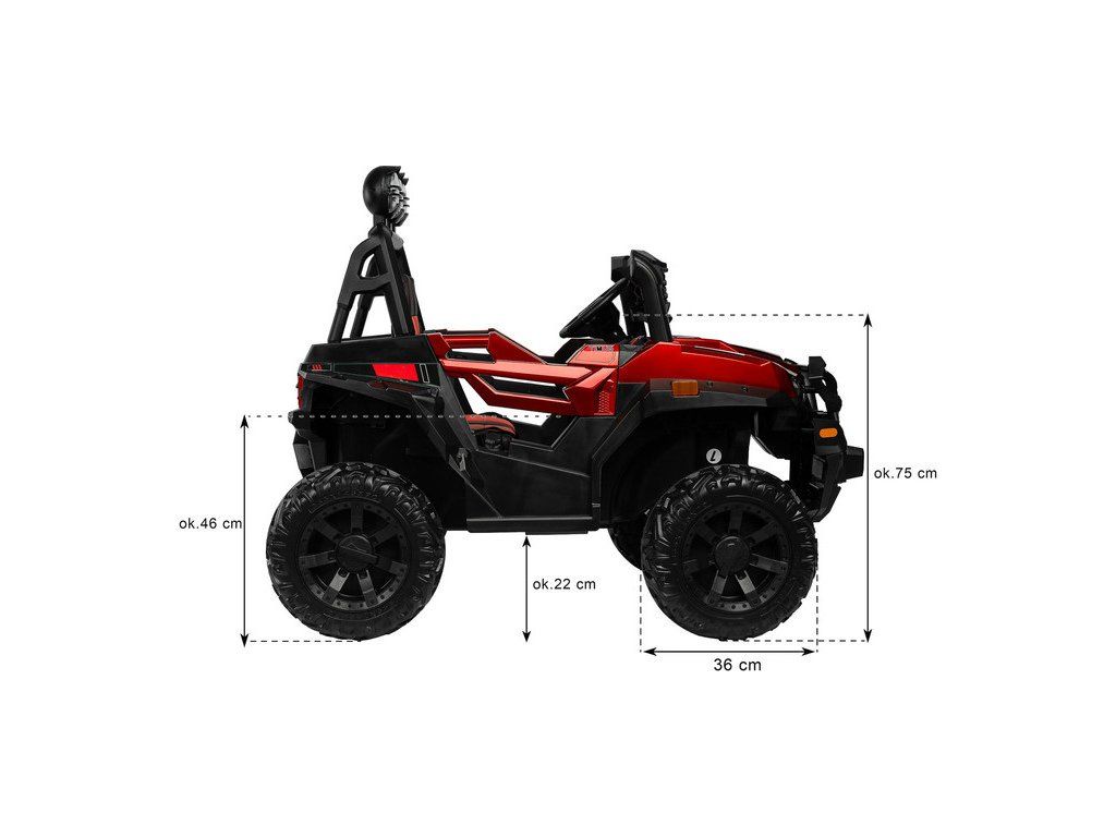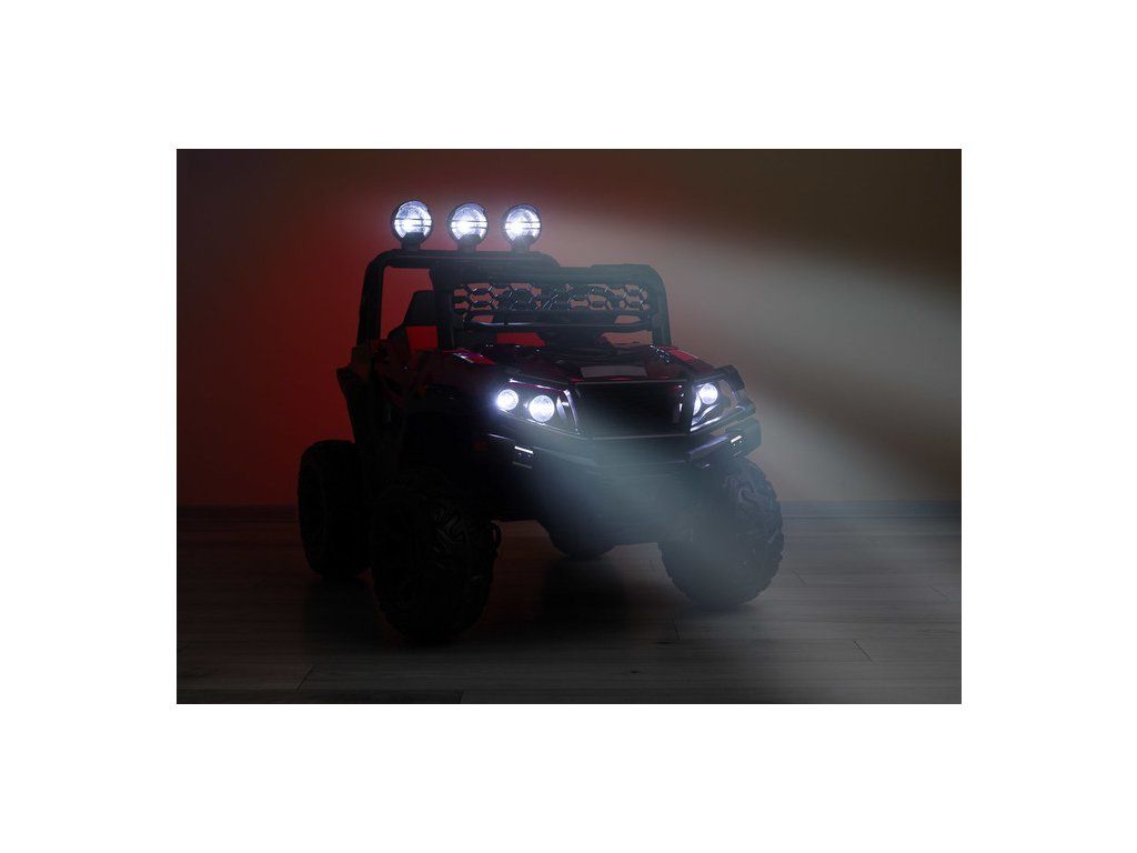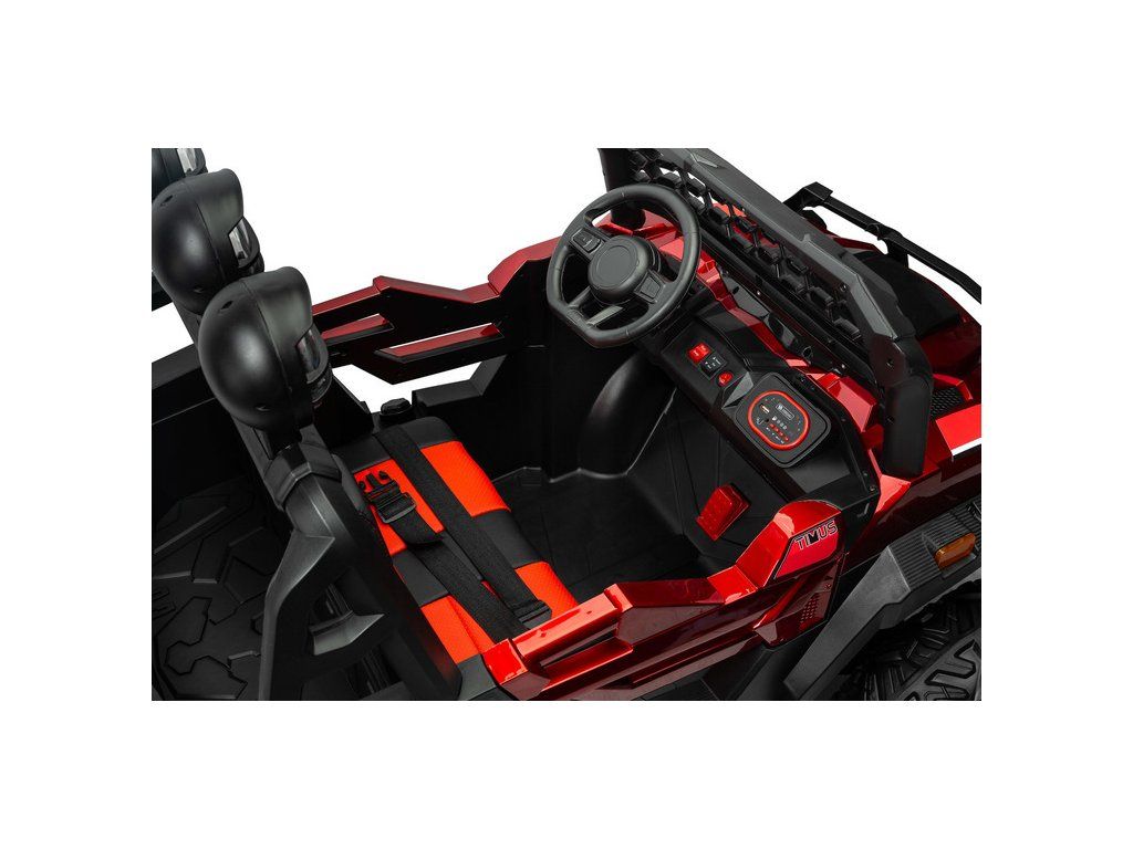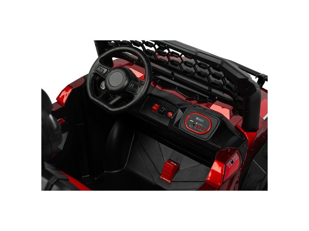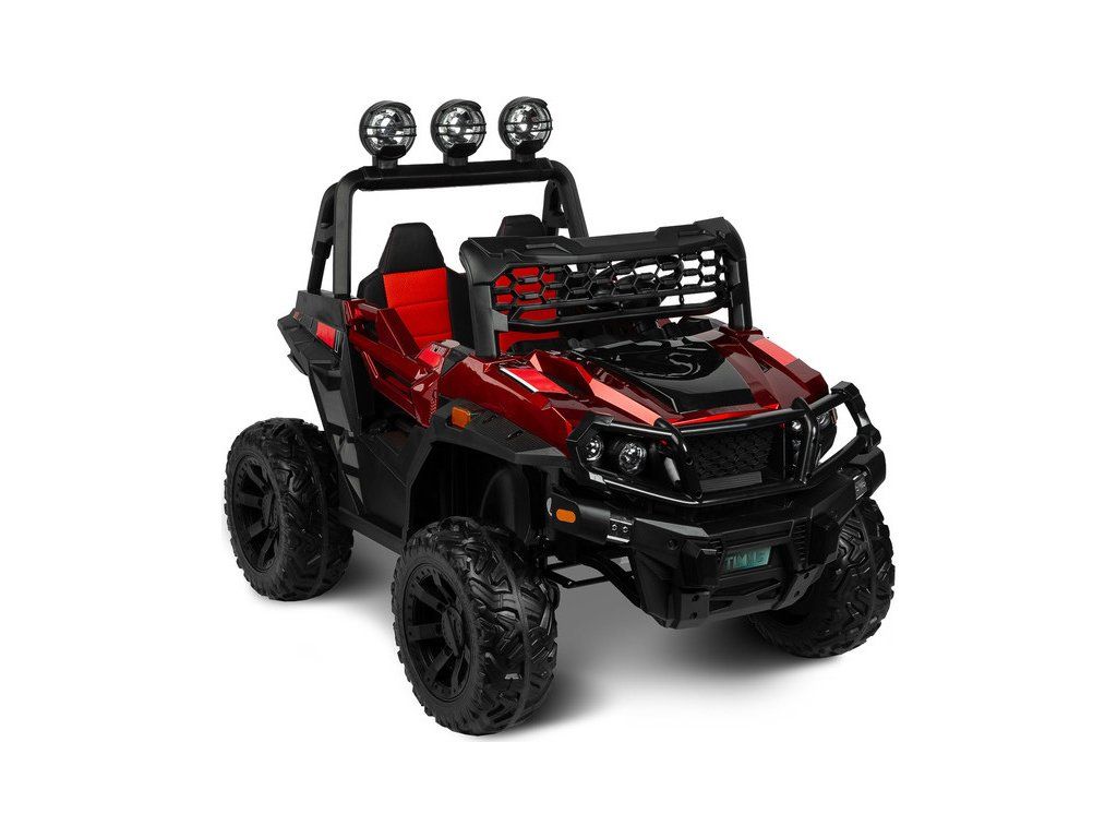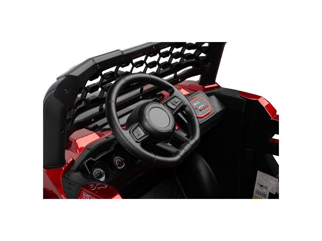Timus je veľké vozidlo na batérie v skutočne terénnej verzii. Má všetky kľúčové prvky, vďaka ktorým sa vaše dieťa bude cítiť ako za volantom skutočného terénneho vozidla : 35 centimetrové kolesá s hlbokým dezénom, 4 výkonné motory , vysoká svetlá výška až 20 cm a priečka s tri LED svetlomety. Pohodlie pri jazde zaistí veľké a pohodlné sedadlo z ekokože vybavené brušným bezpečnostným pásom. Vďaka veľkej veľkosti Timusa sa o niečo staršie deti budú môcť naučiť zmyslu pre priestor, ale aj zodpovednosti a samostatnosti. Rodičia menších detí však môžu vozidlo ovládať na diaľku alebo využiť funkciu hojdania, vďaka ktorému sa vozidlo mierne pohybuje dopredu a dozadu. Čas strávený vo vozidle navyše spríjemní multimediálny panel s USB a Bluetooth.