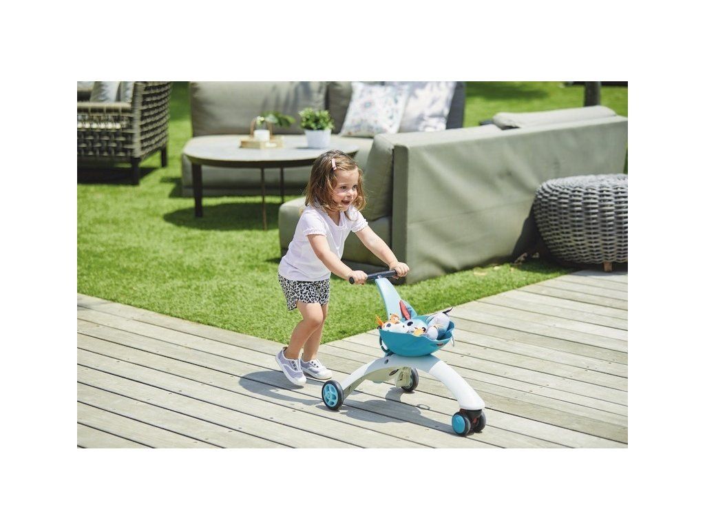 Vďaka košíku, ktorý je súčasťou výrobku, odrážadlo jednoducho premeníte na originálny vozík, do ktorého si dieťa môže naložiť obľúbené hračky a vziať tak napr. svoje plyšové hračky na výlet.
