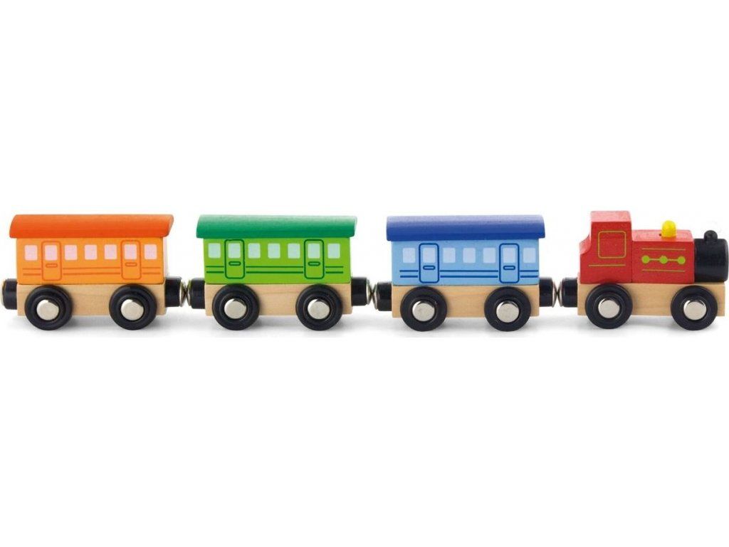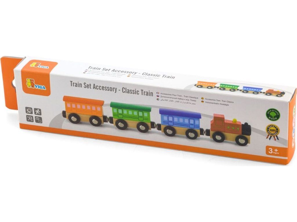 Sada obsahuje: 3 farebné vagóny a 1 lokomotívu. Celé je to zabalené v estetickej farebnej darčekovej krabičke s vešiakom.